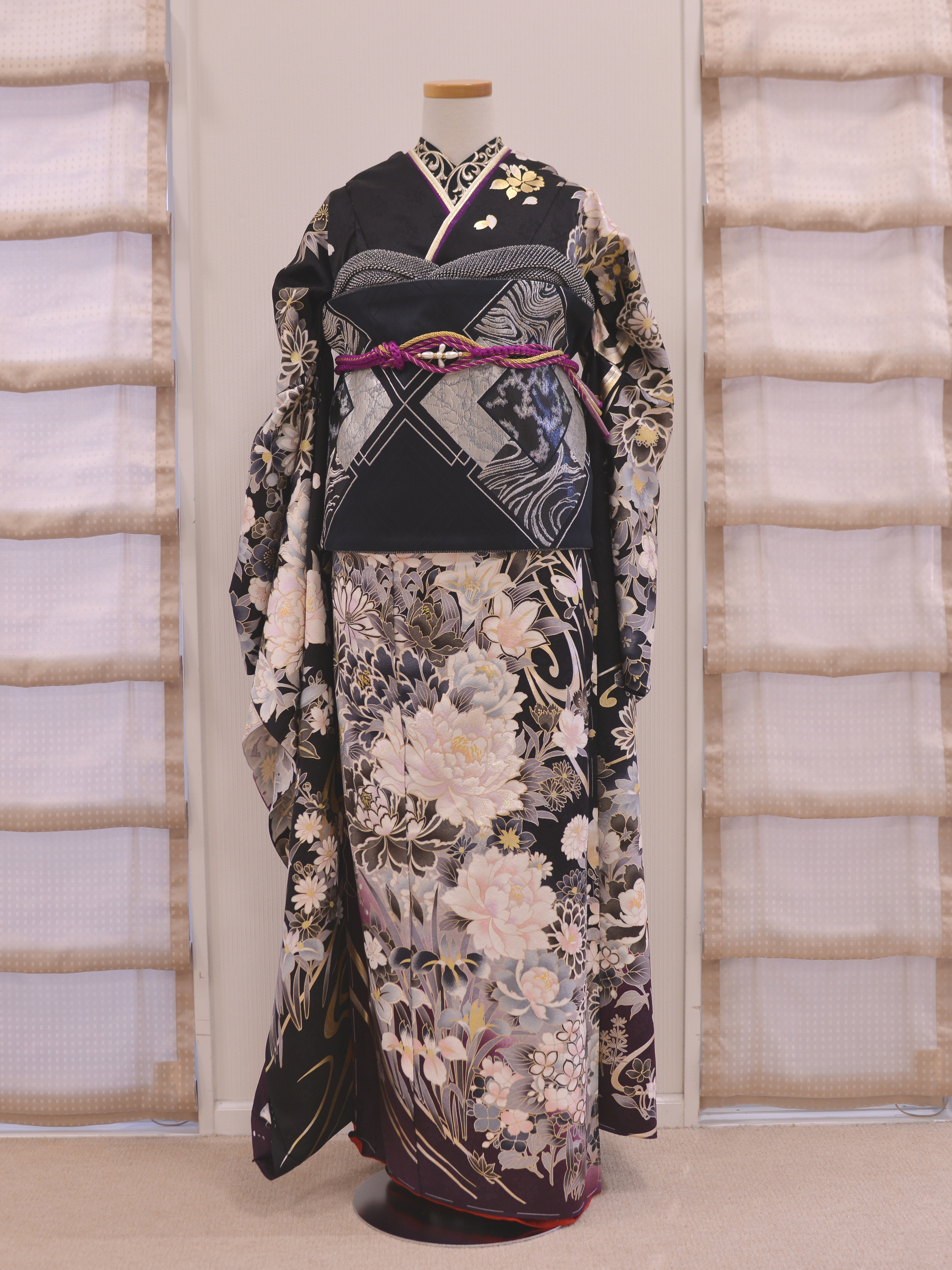 重衿、帯締めは振袖の中に少し入っている紫を使用しました。