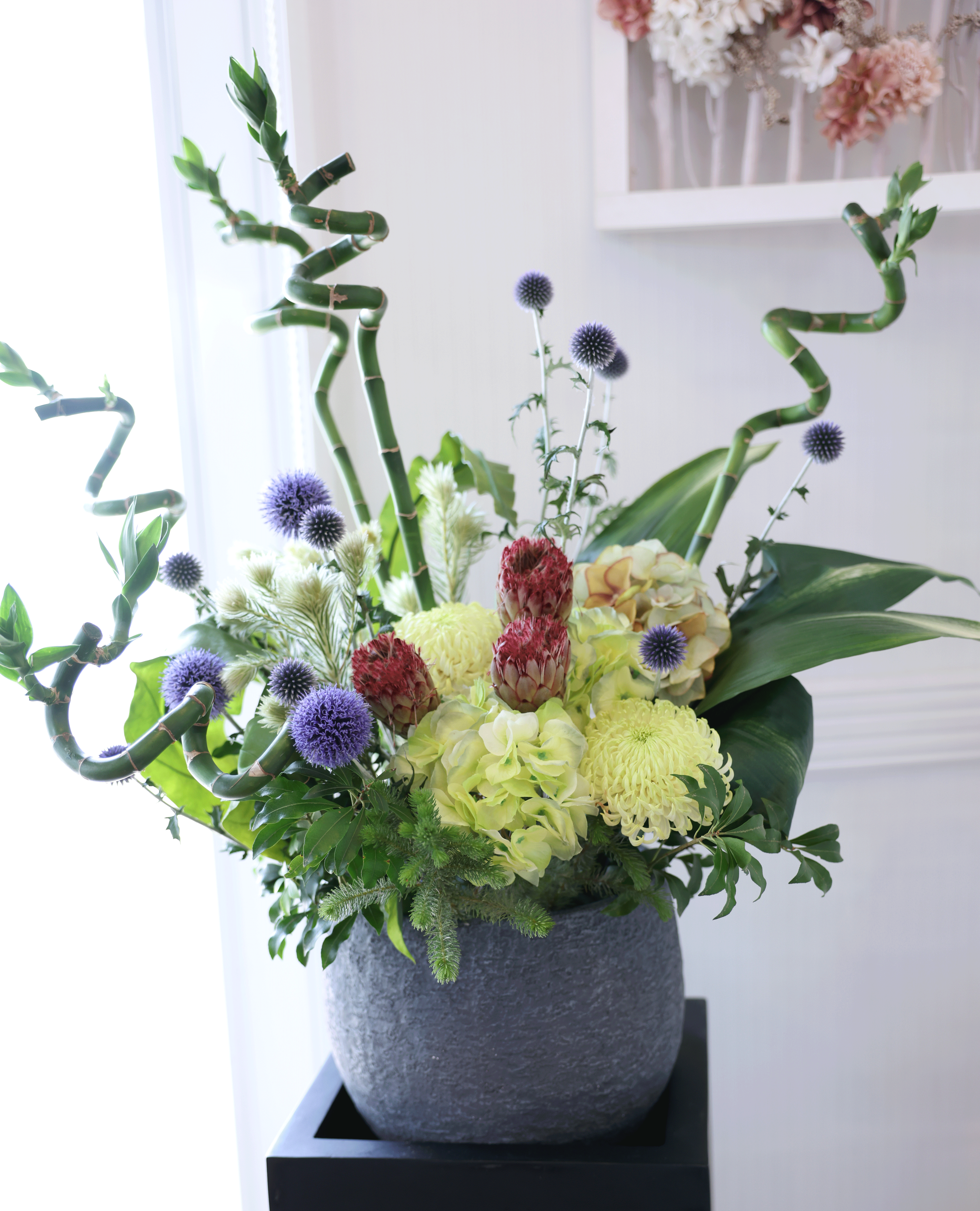 プロテアは全世界に100種類以上の品種があり、代表のお花は『キングプロテア』が有名で『花の王様』とも呼ばれています。