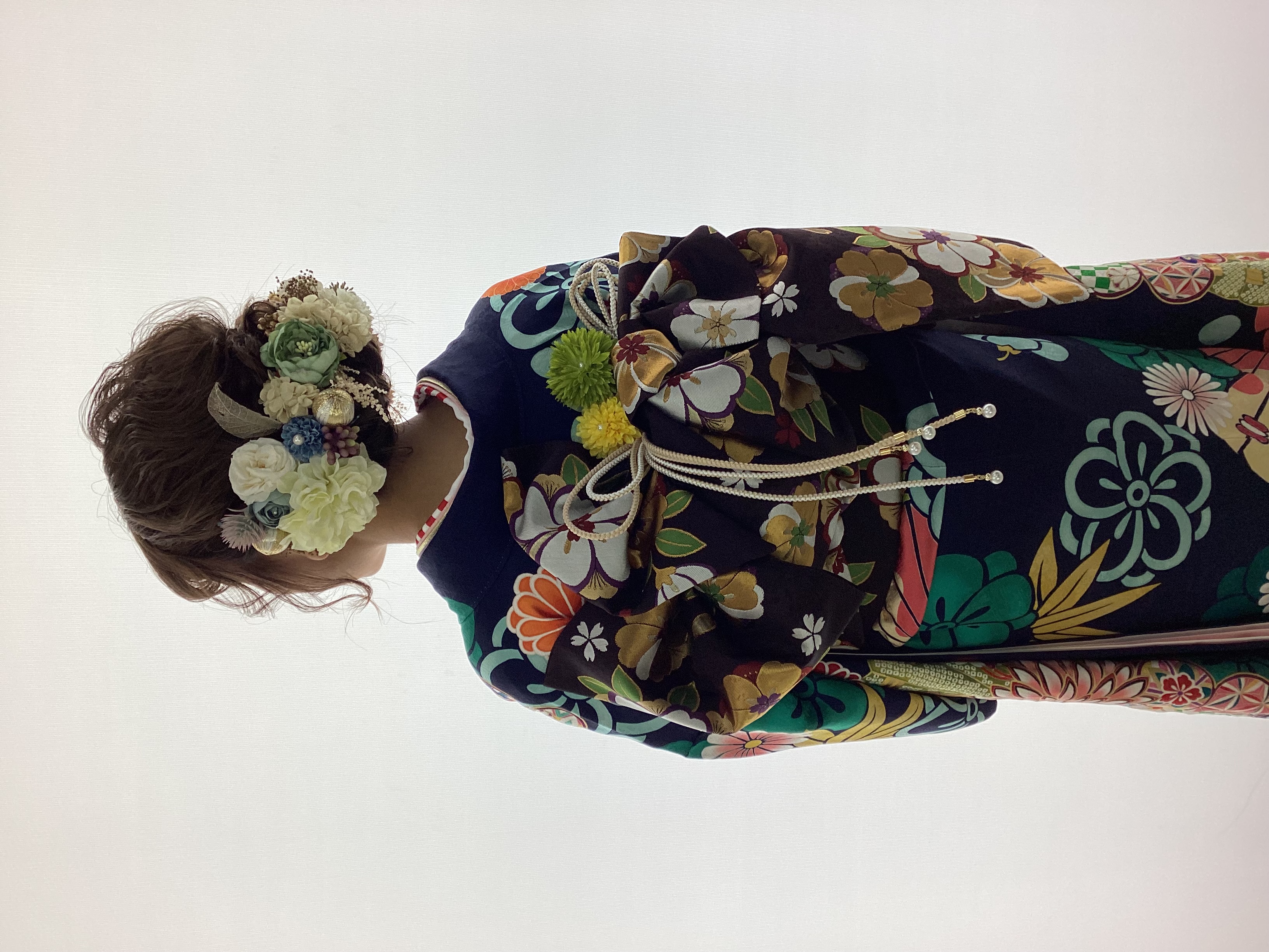 くすみカラーの髪飾りが相性抜群ですね( *´艸`)