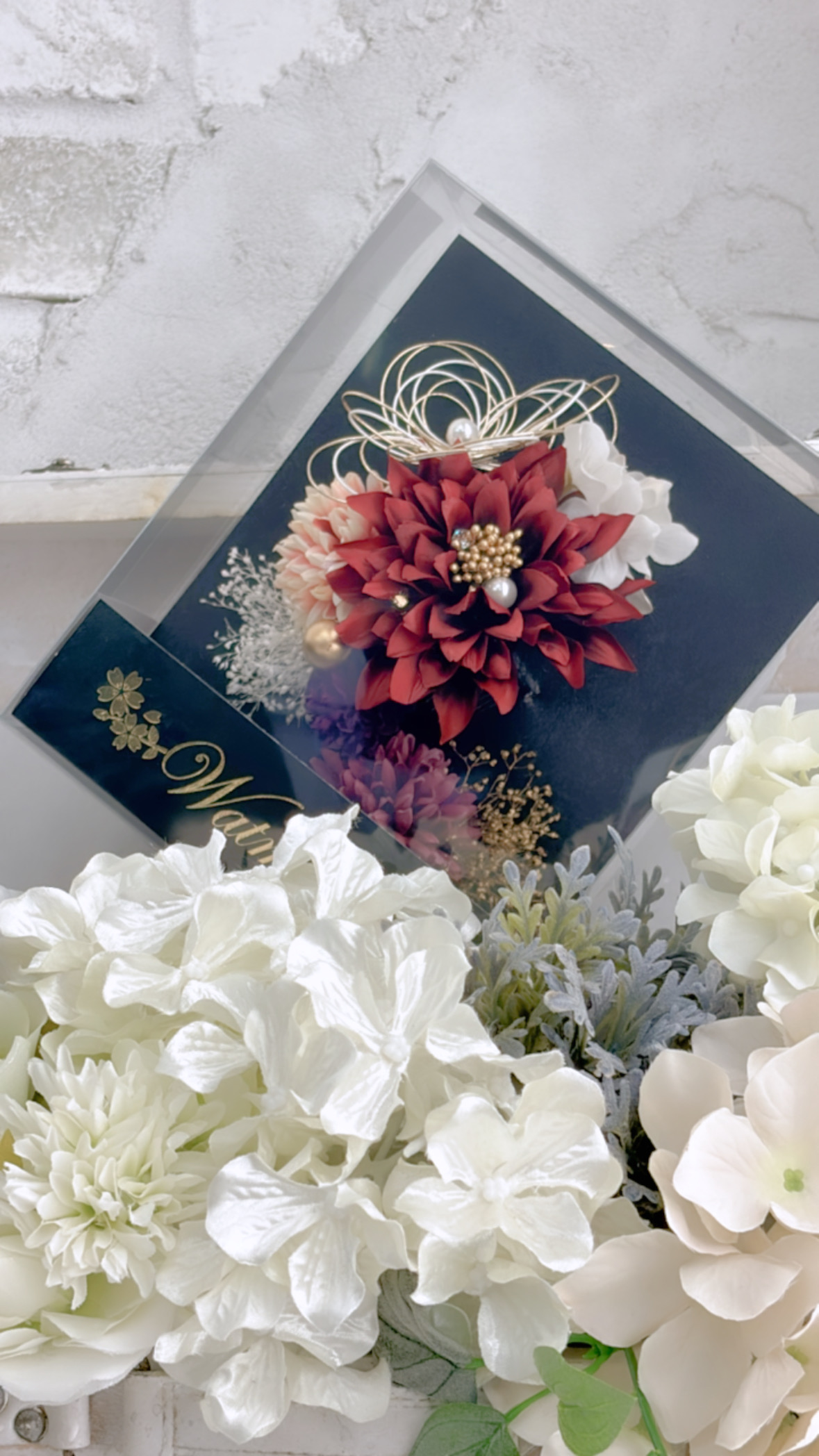 強すぎない赤色のお花なので大人っぽくも可愛い感じにも