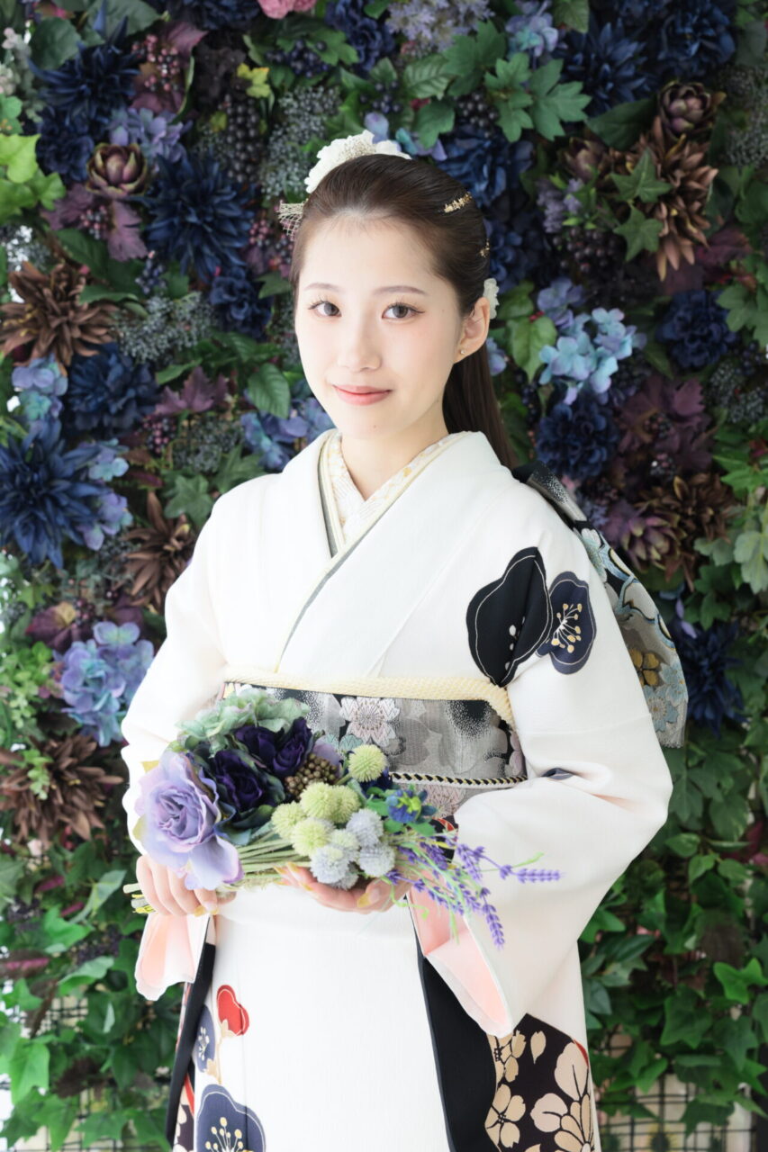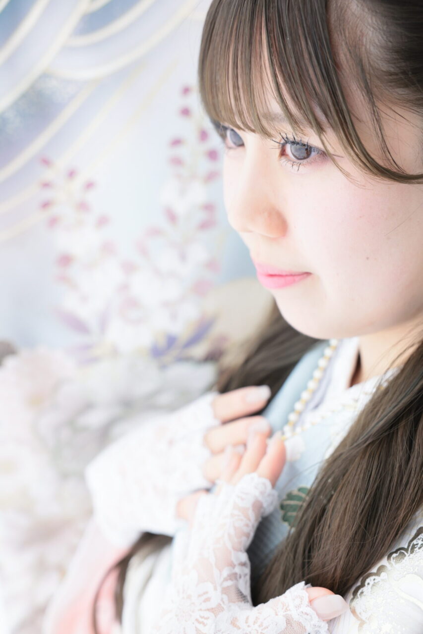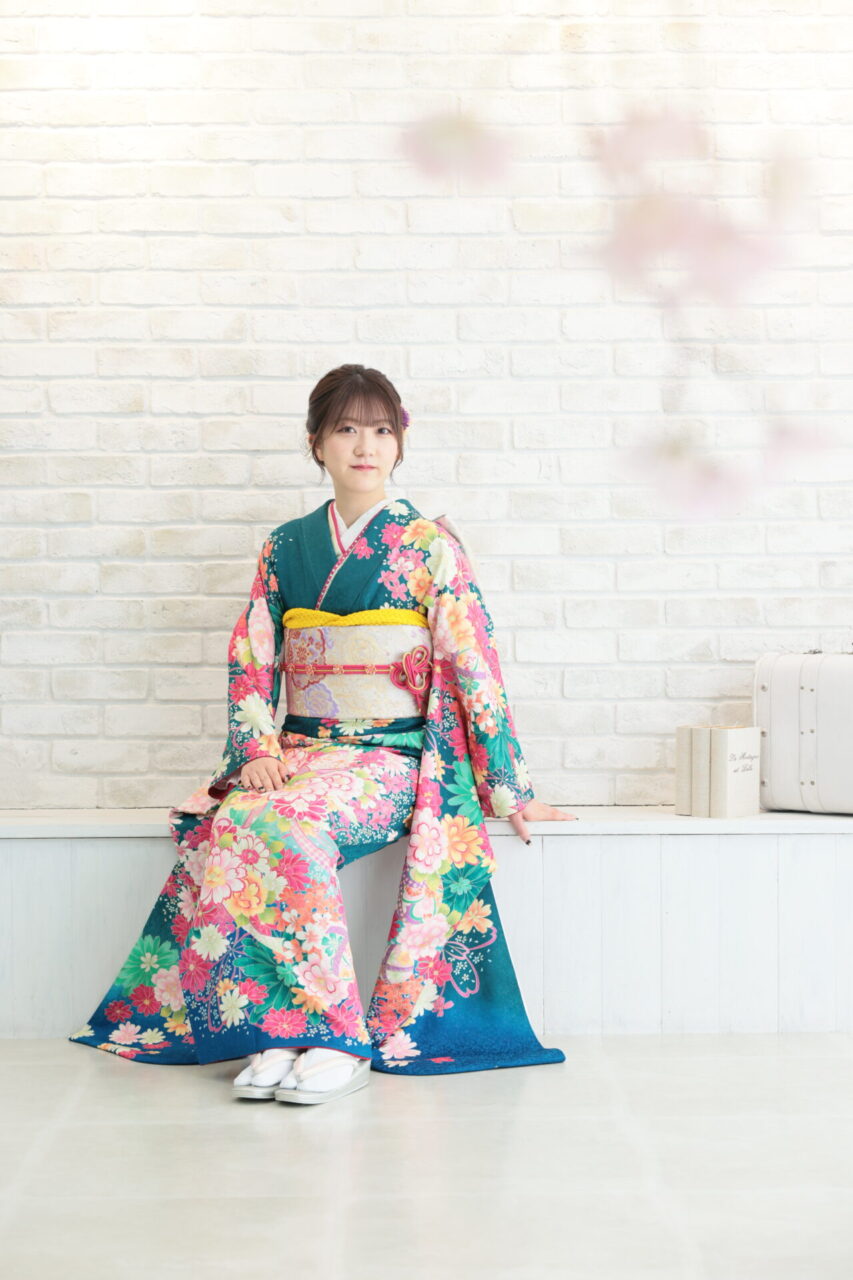 一方で、前撮りでは一日をまるごと撮影に使えるため、さまざまなポーズや構図に挑戦できます。自然な笑顔や美しい立ち姿はもちろん、振袖の柄がしっかり映える全身ショット、帯や髪飾りのアップなど、アルバムに残したいバリエーションをじっくりプロのカメラマンが撮影するのが大きな魅力です。