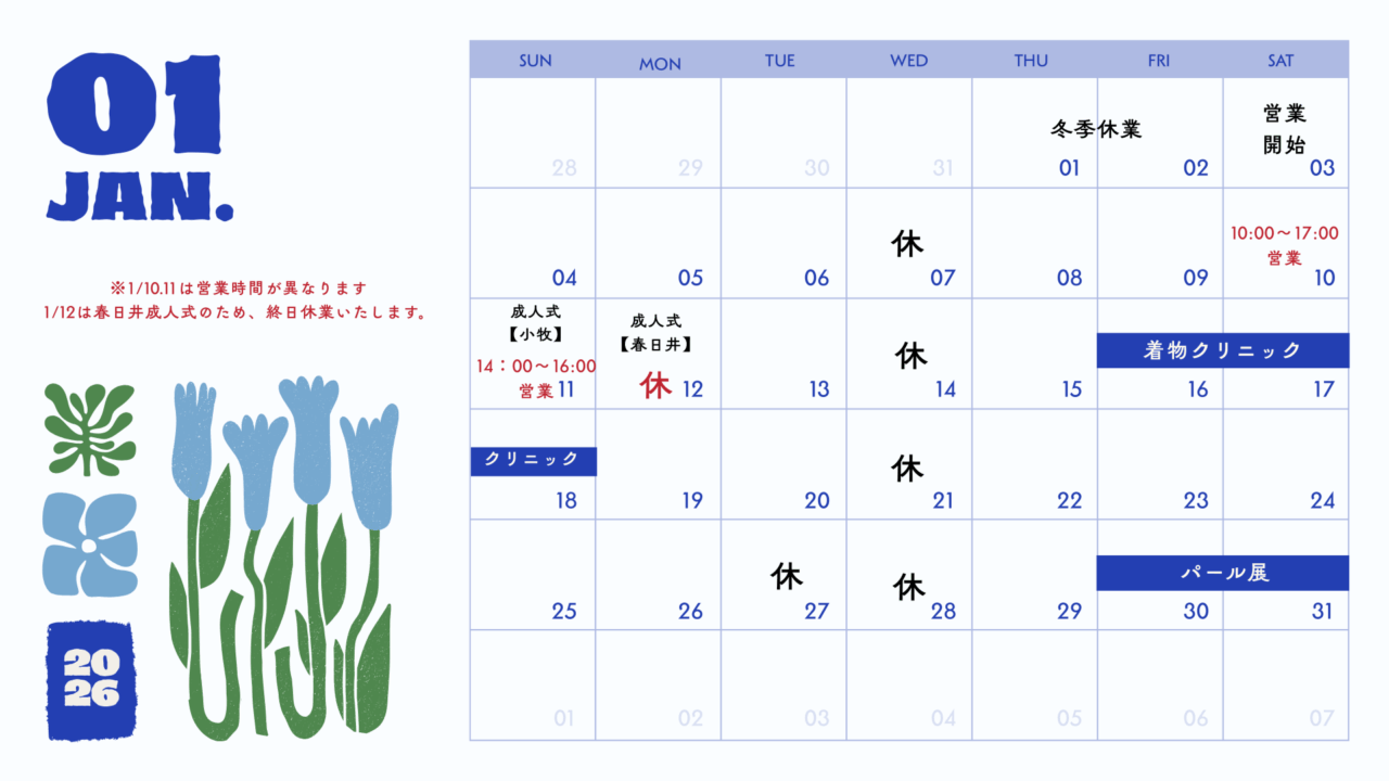 成人式前日から当日の営業時間も変則的となっておりますので、ご注意ください!