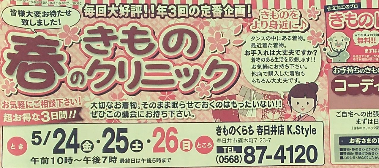 皆さんこんにちは! きものくらち春日井店です。 明日5/24(金)~26... -