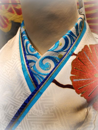 半衿、重ね衿、帯揚げ、帯締めは寒色でまとめました
