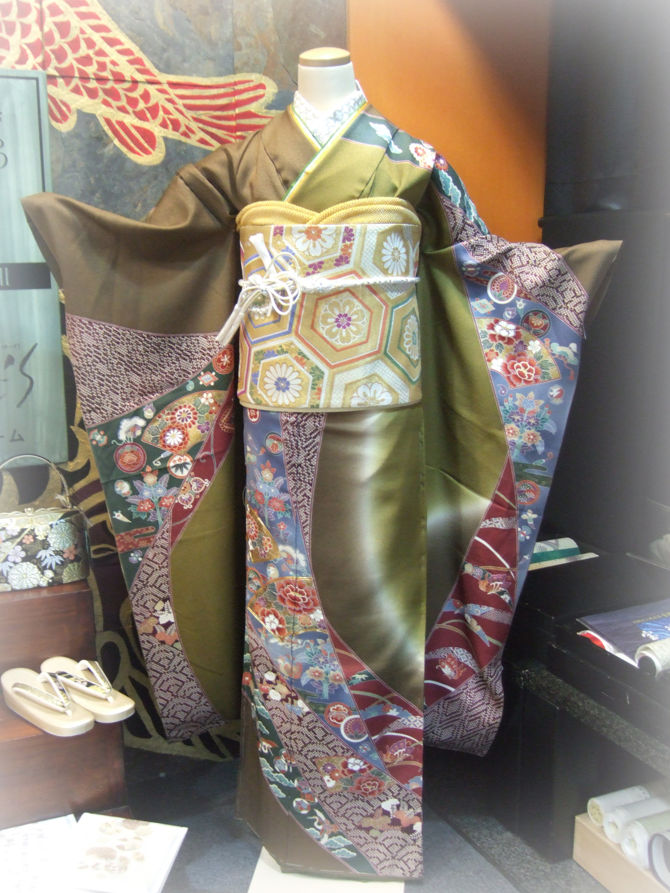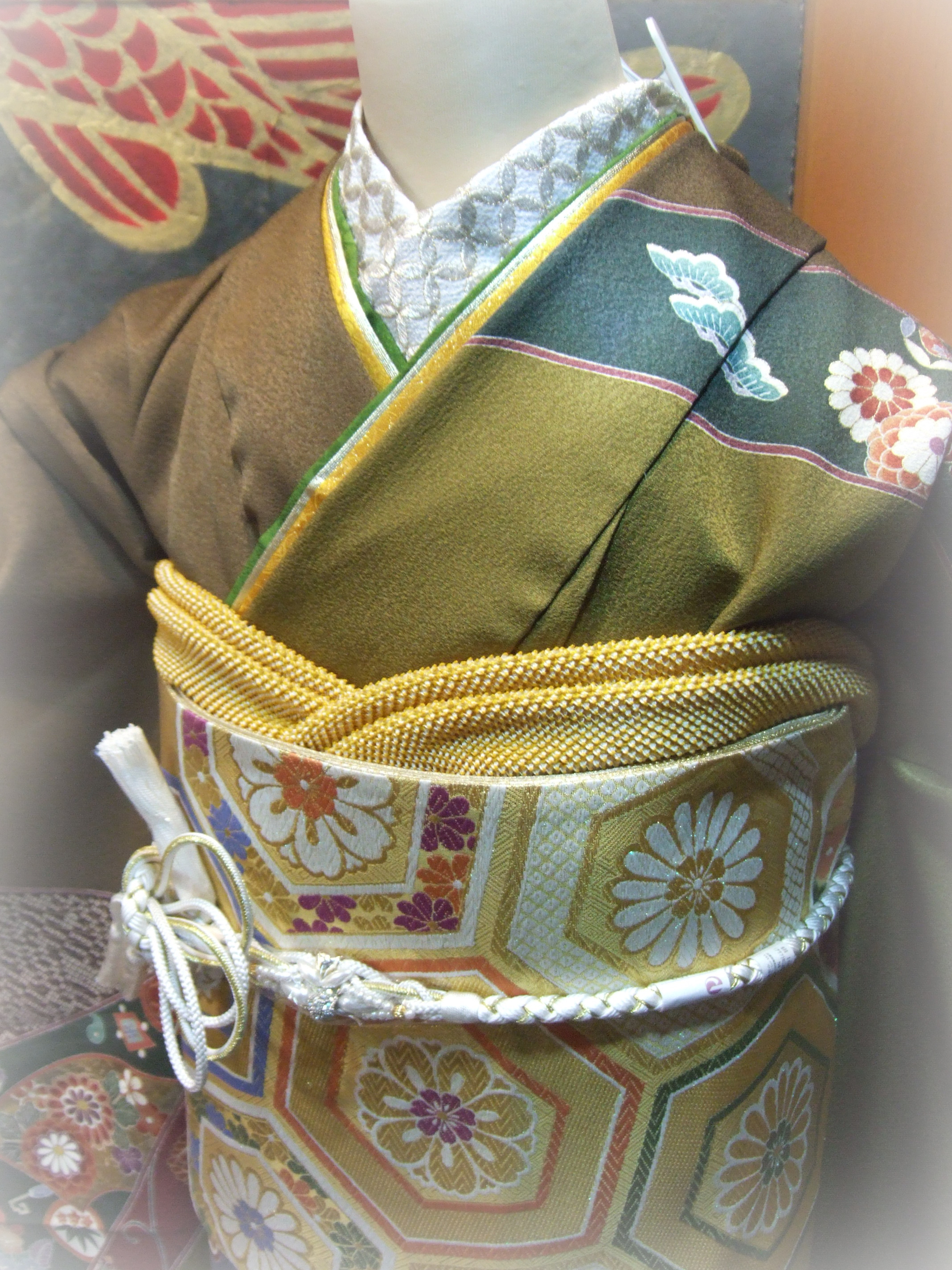渋い雰囲気の、深い黄緑色の振袖が素敵ですよ。