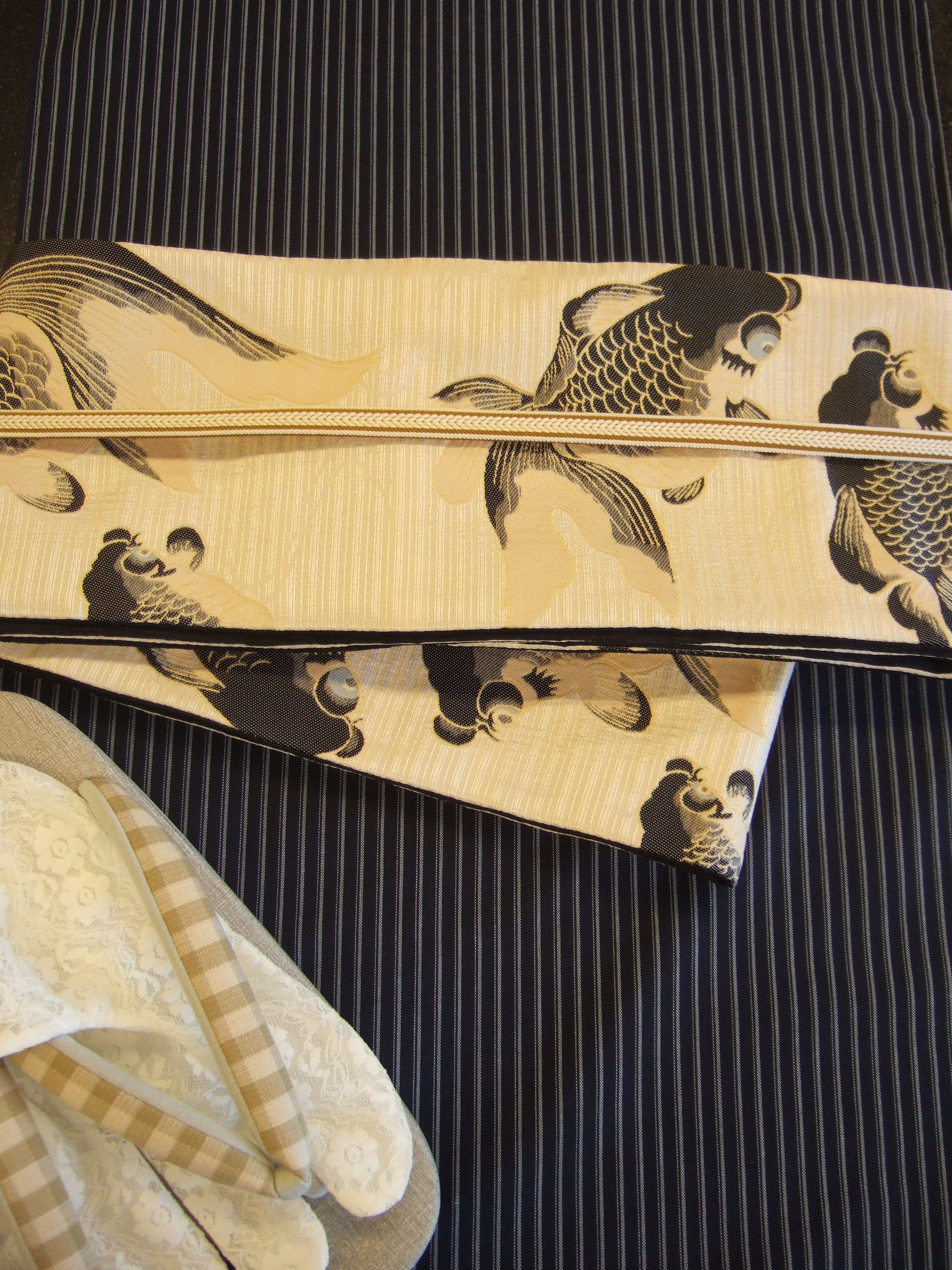 金魚の半巾帯で展示していましたので、他のコーディネイトも見て下さいね。