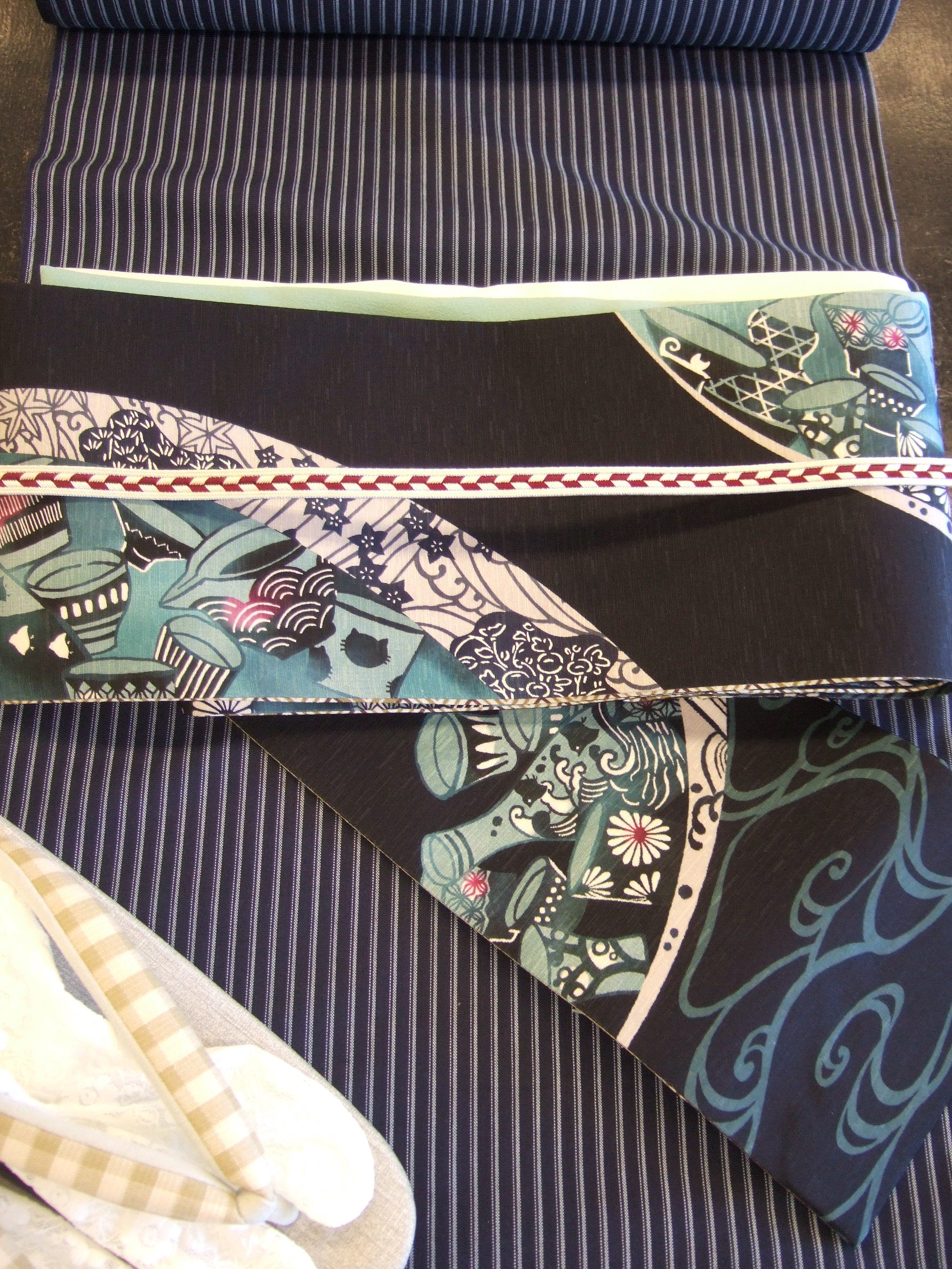 たまたま、お家で洗える木綿と絹でできた着物の、コーディネイトを