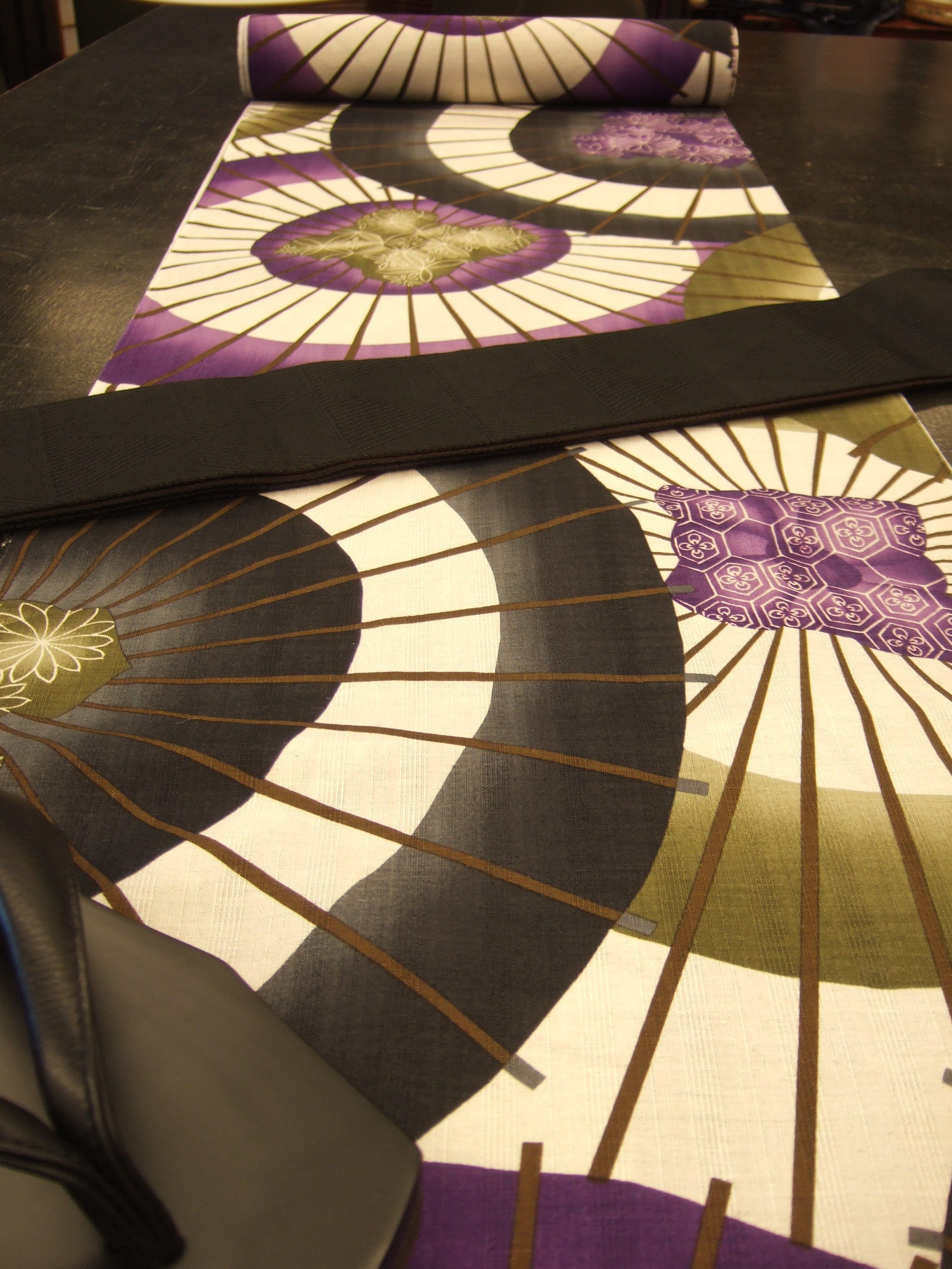 室町時代から、装束の模様に傘が取り入れられるほど、昔からある柄です。