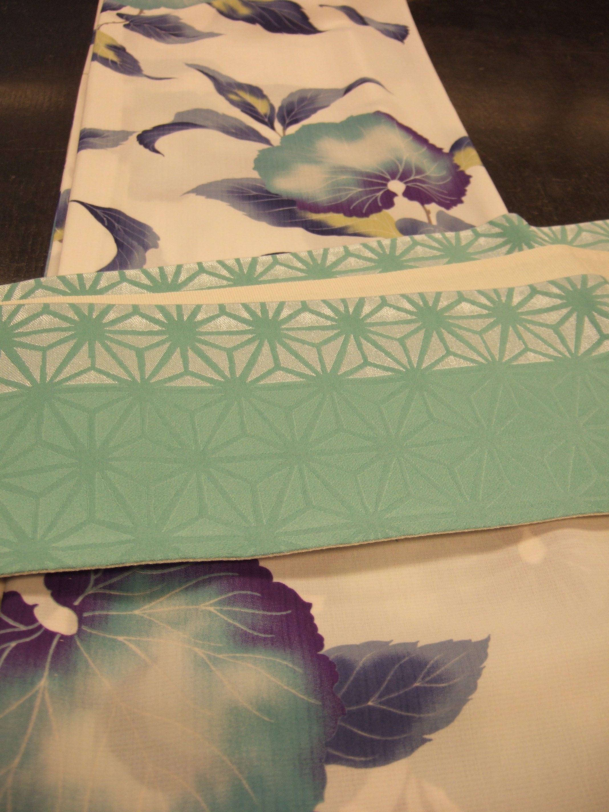 涼しい日が続いているので、浴衣の柄も蕗で涼しく。上品かつ、清潔な雰囲気に。