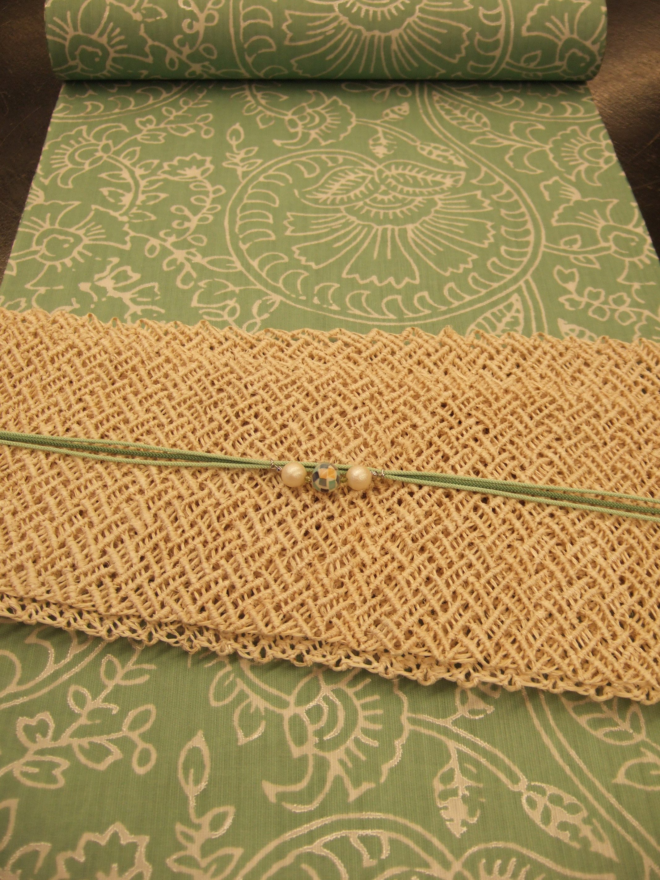 神社仏閣の画像をみていたら、こんな涼し気な浴衣を着ていきたいな、と思いました。更紗唐花の柄に、芭蕉の帯です。