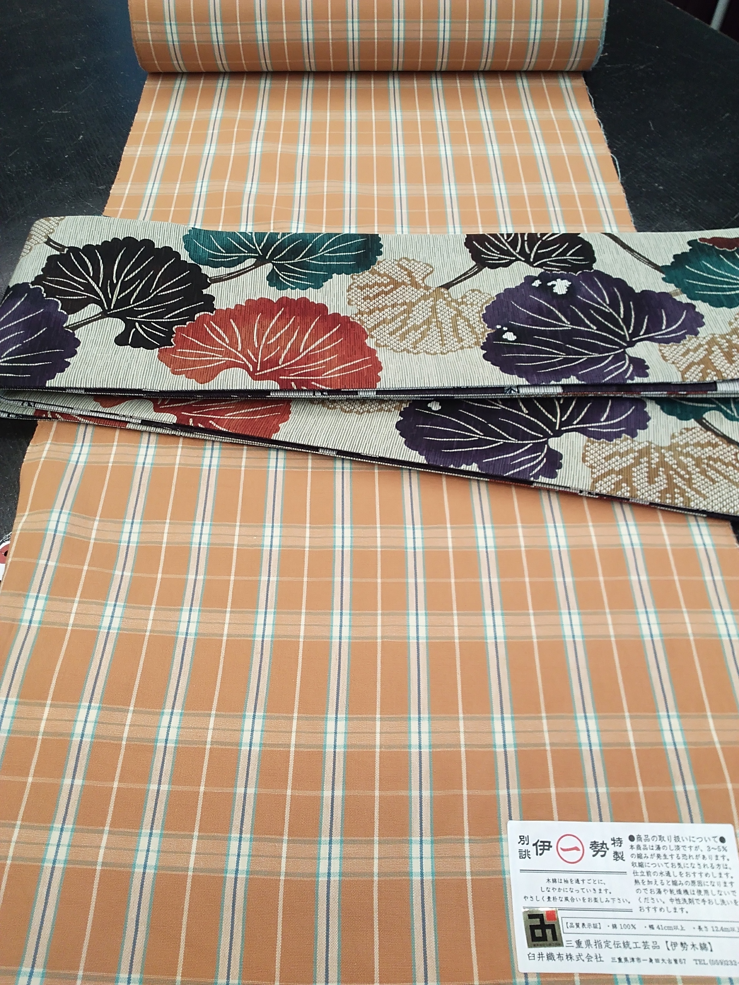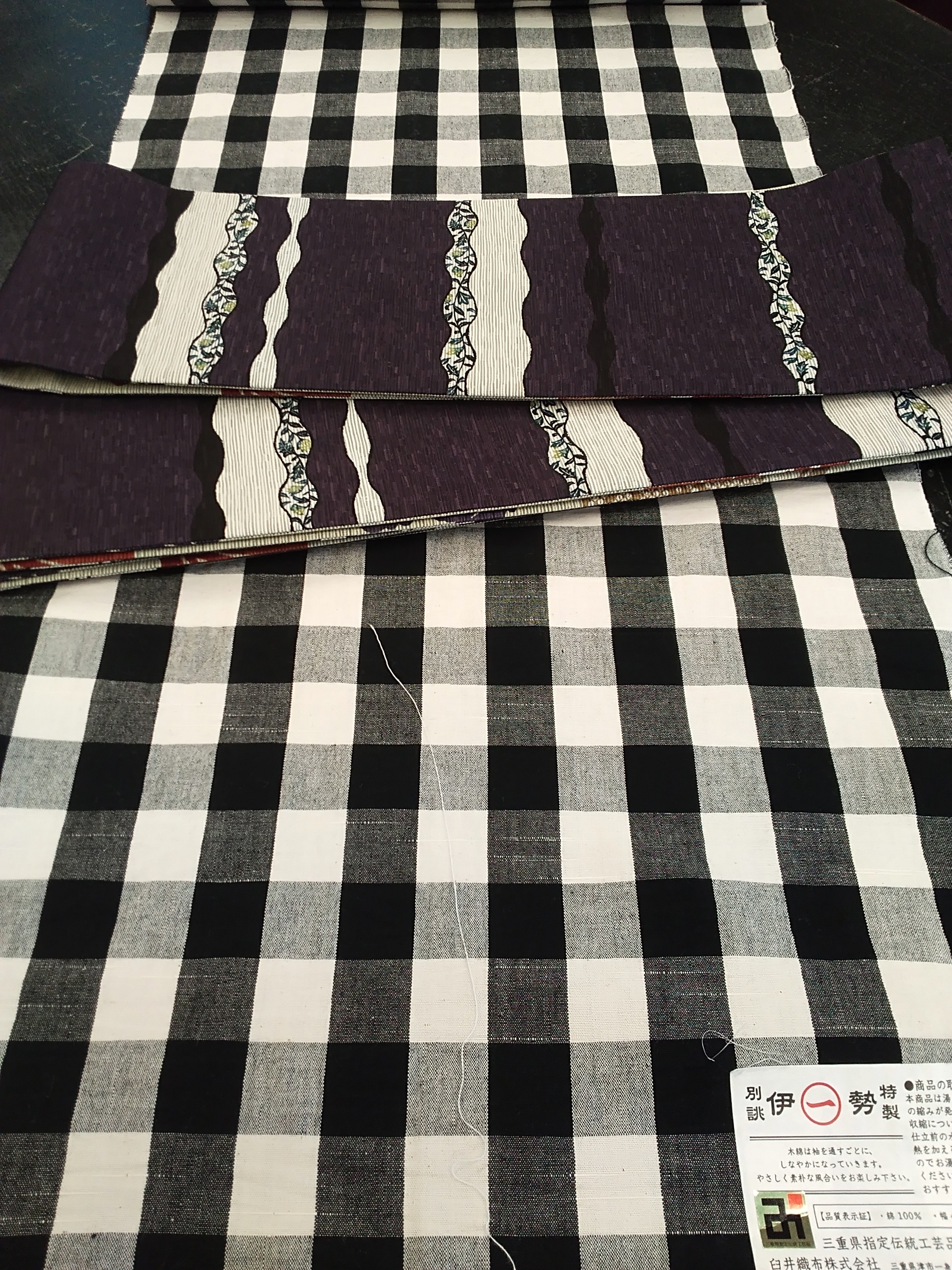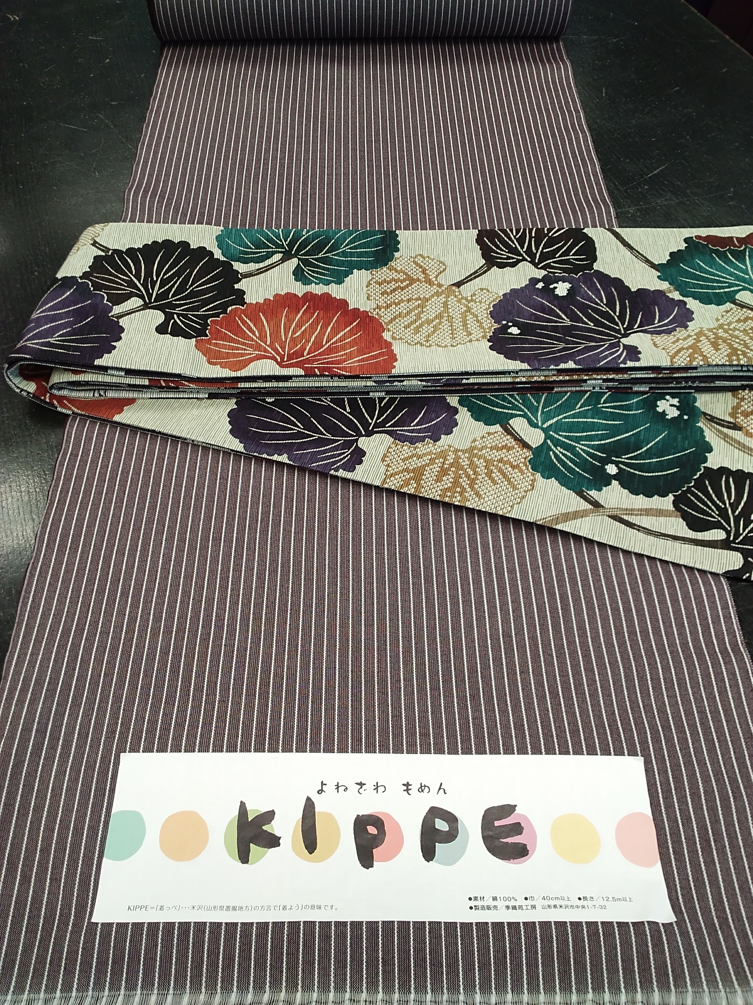 半巾帯1本でも、デザインの凝った帯なら、いろんな木綿の着物に合わせられます。