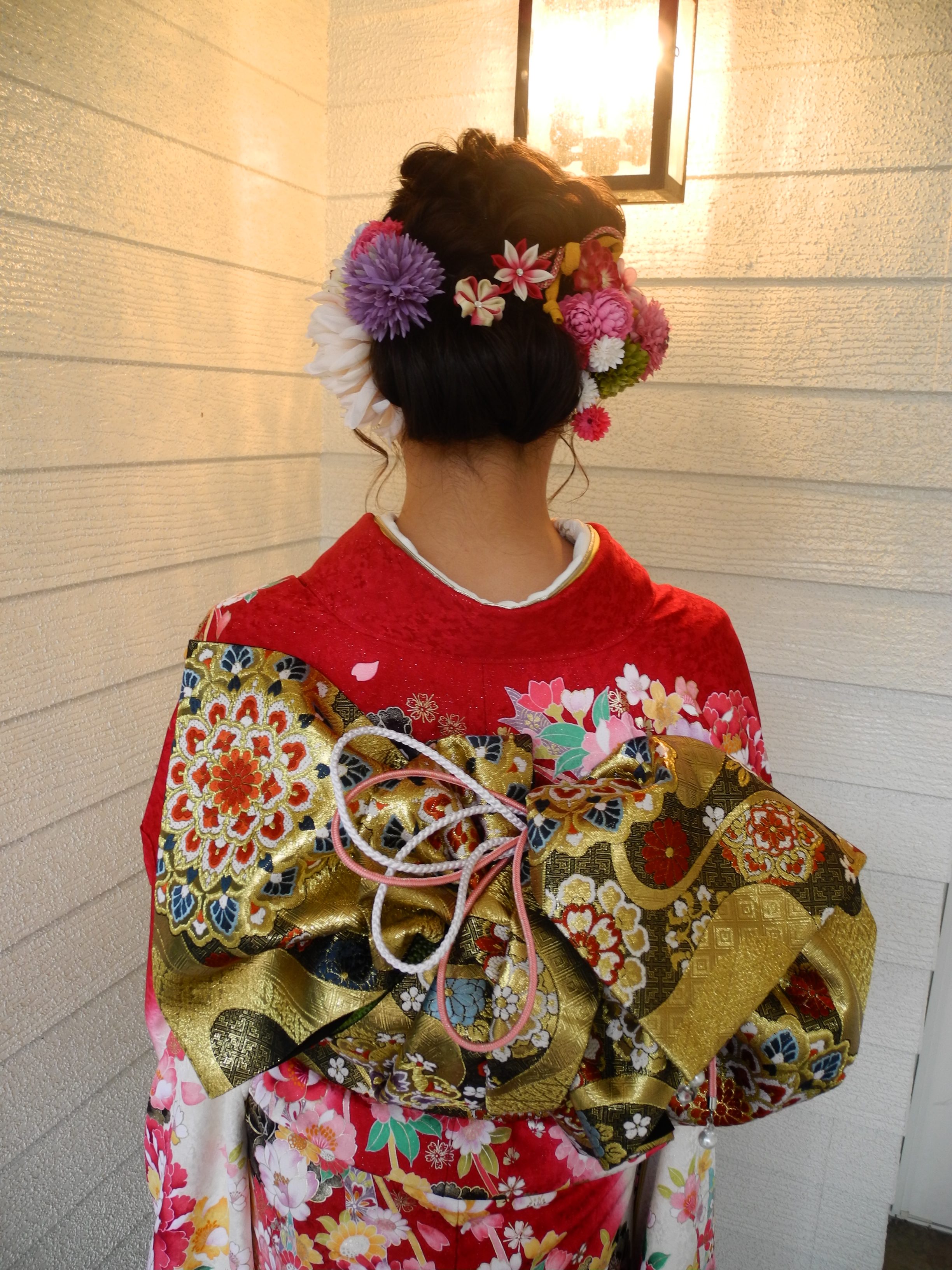帯飾り紐、髪飾りも購入していただき、後ろ姿もゴージャスです。
