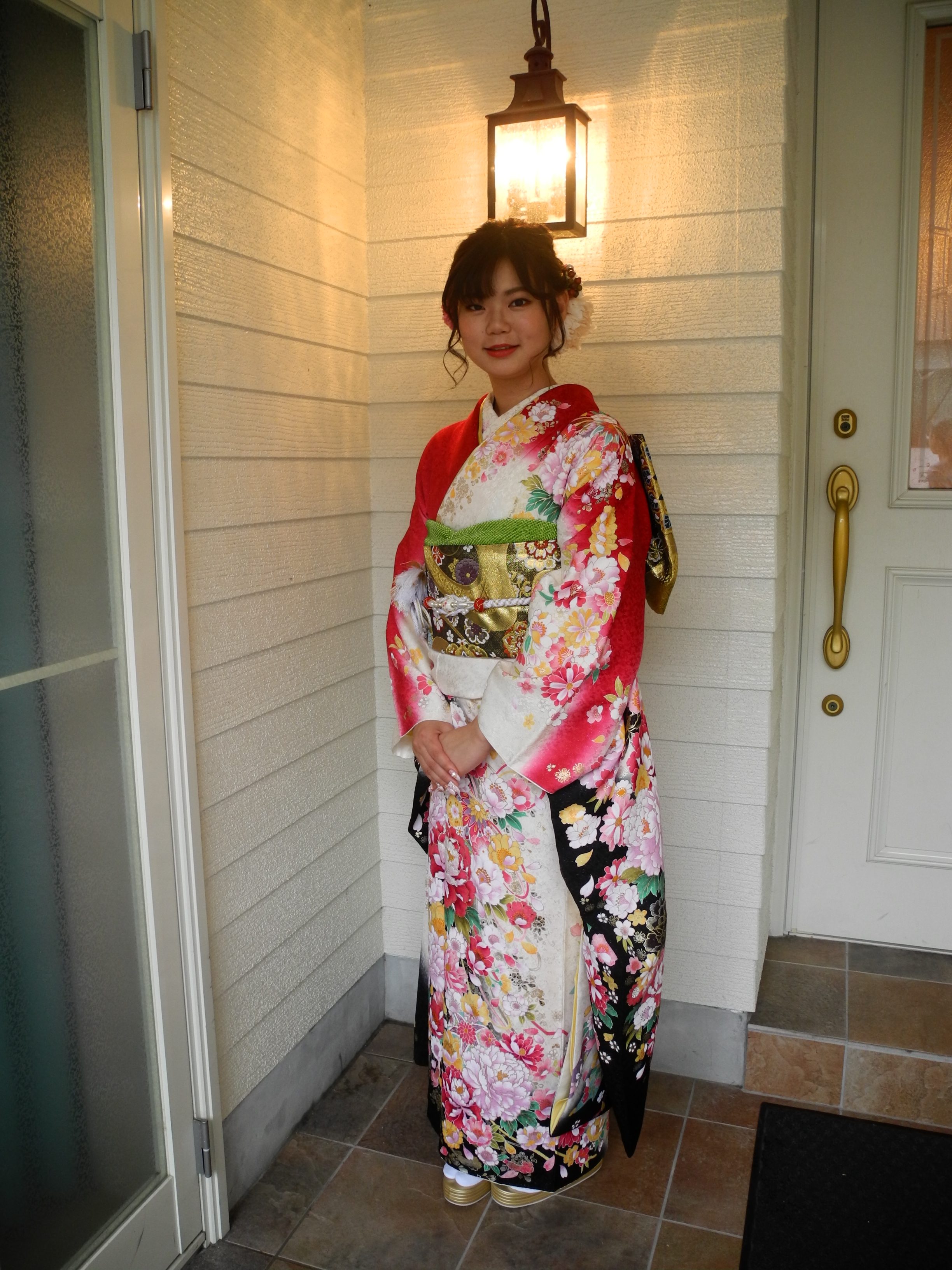 お姉様のお振袖を着ていただき、小物をお嬢様に合わせて変更していただきました。とても華やかで可愛らしい雰囲気にピッタリですね。