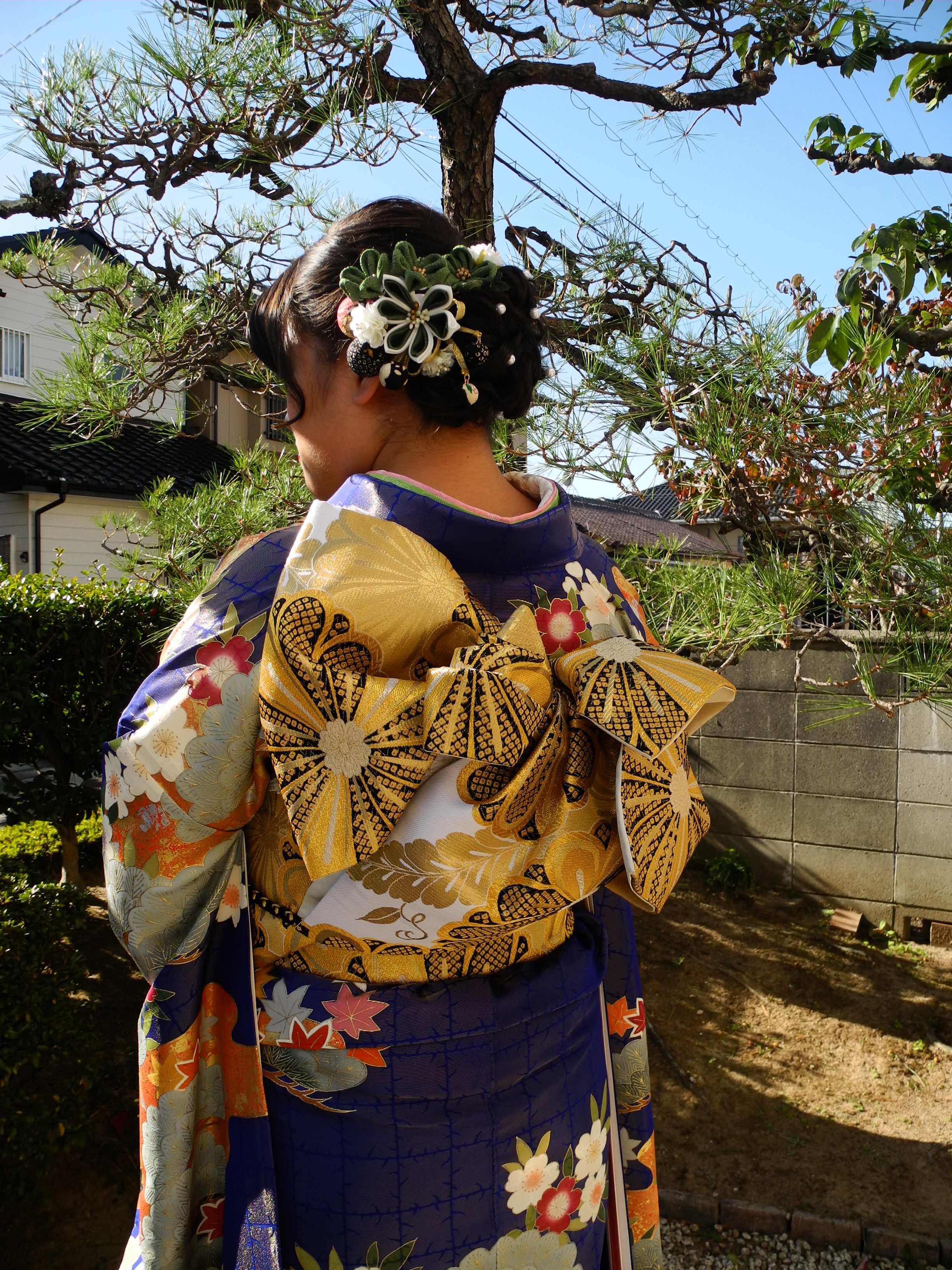 髪飾りも帯に合わせて、白、黒、金を取り入れて、後ろ姿も統一感のある仕上がりですね。