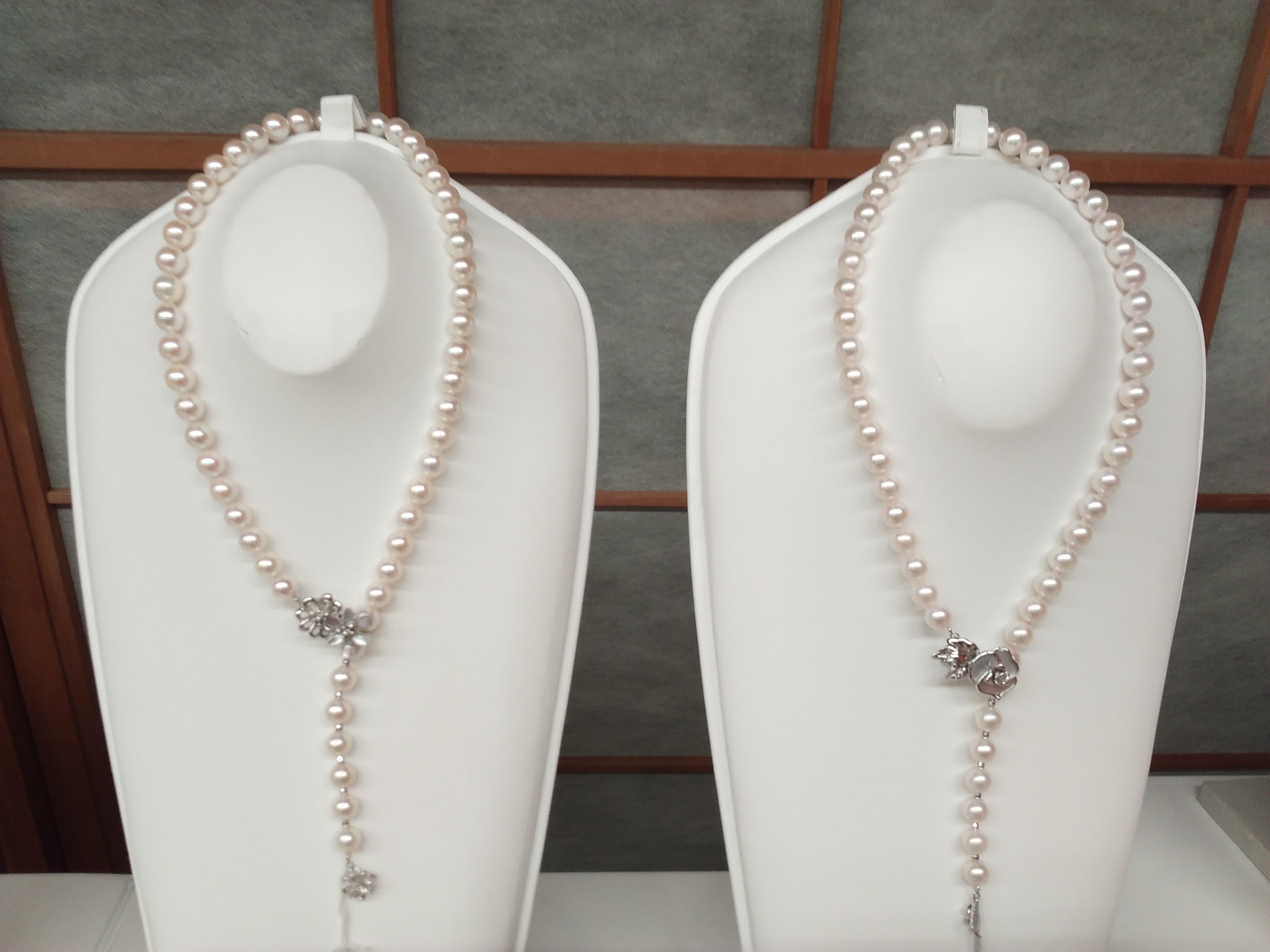 というのも、規定の長さは42センチらしく、首が細いと、ブラックフォーマルを着用した時に、襟の中に、真珠が隠れてしまうことがあります。