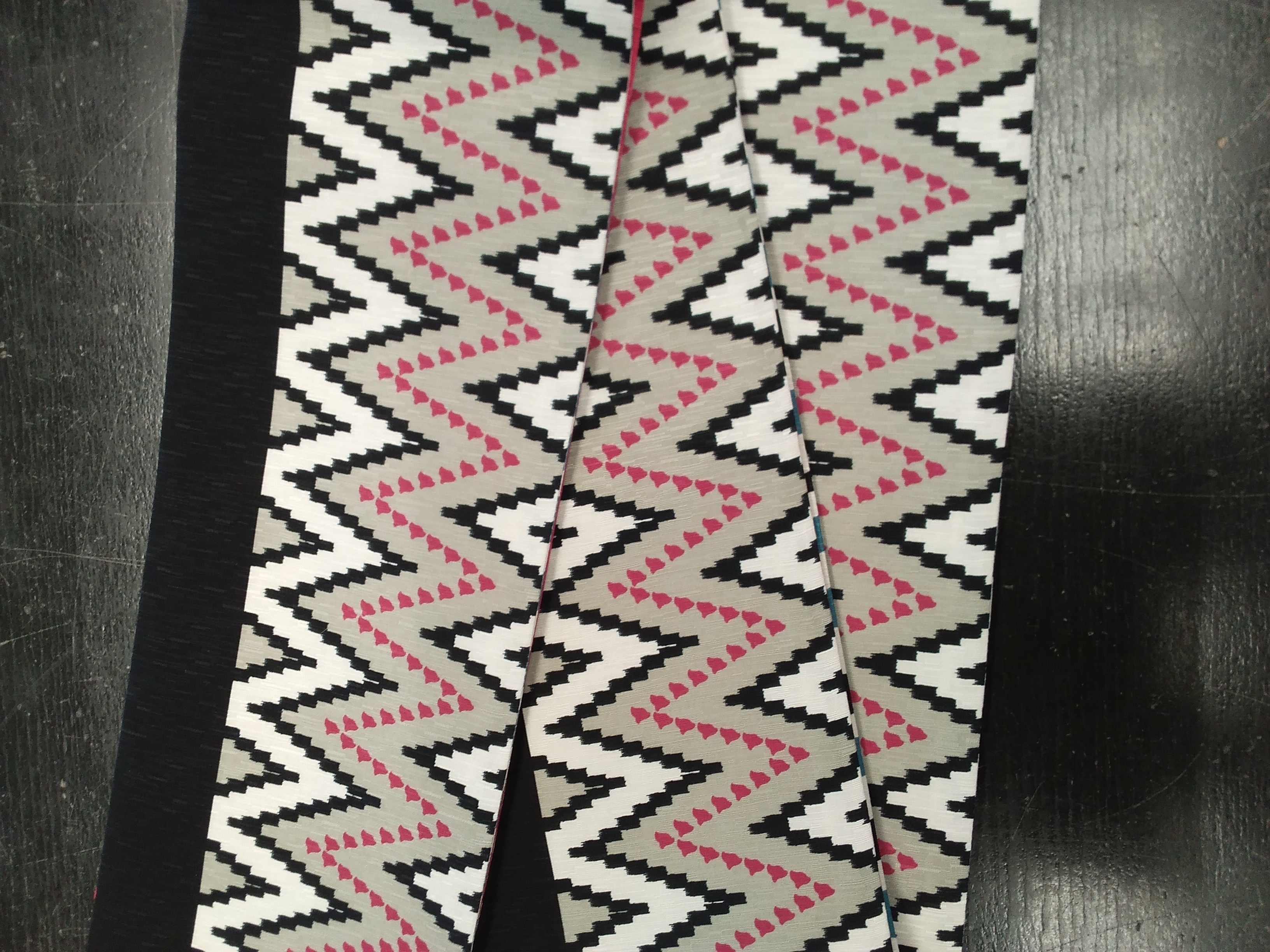 結び方でどっちかが出るようにも出来ますし、どちらか一方を見せることもできる面白い半巾帯です。