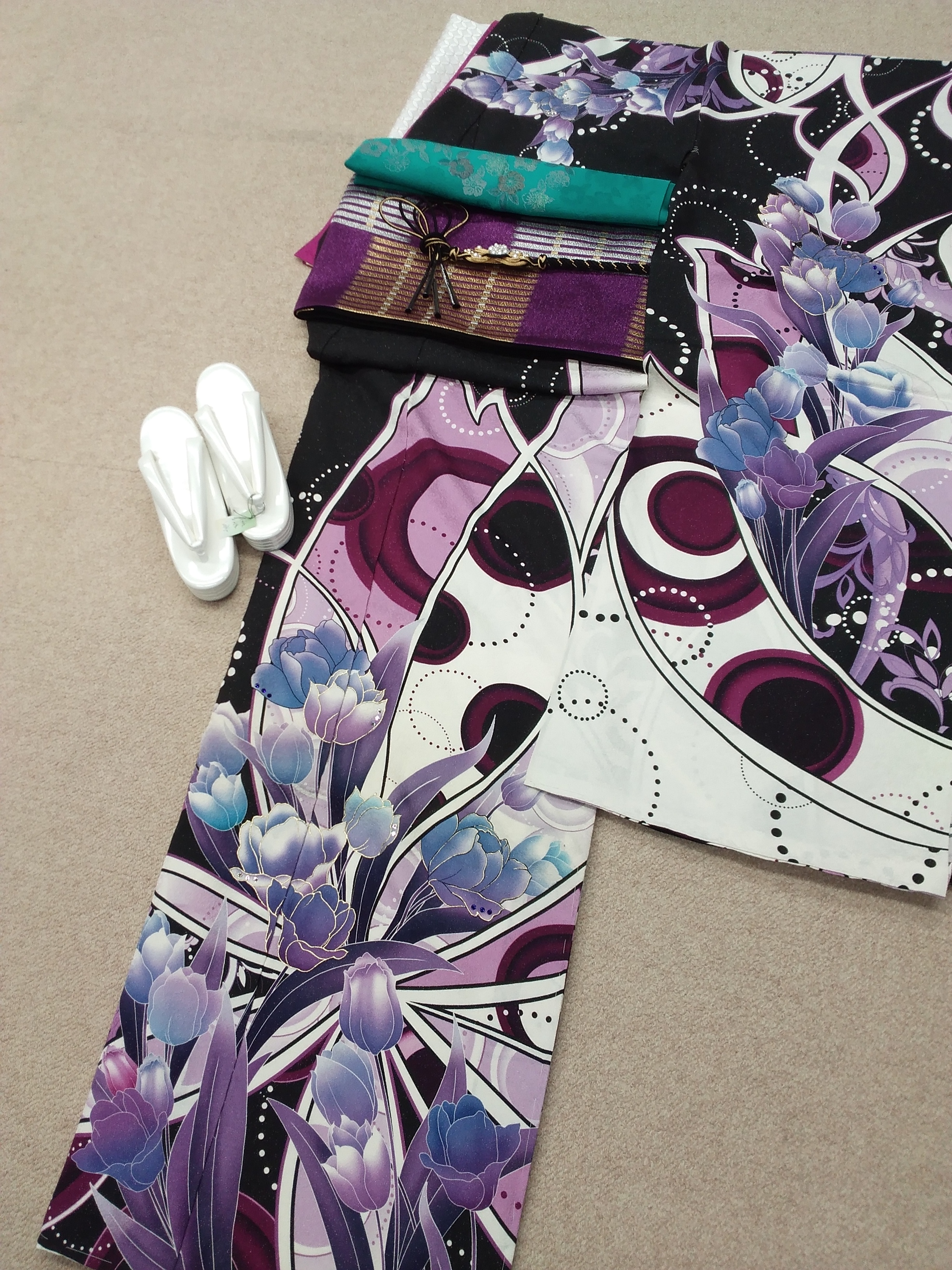 私は、お嬢さまの名前や苗字に桜、梅、松、菊、アヤメ、蘭など、着物に頻繁に使用されている文字が入っていると、思わずその着物の柄を勧めてしまいます。しかし、今回はチューリップ。唯一、当店にあるチューリップ柄の振袖は、チューリップさんが来店されることもないので、なかなか皆様にはご提案できていませんが、チューリップ好きさんがいらしたら是非、見て頂きたいお振袖です。
