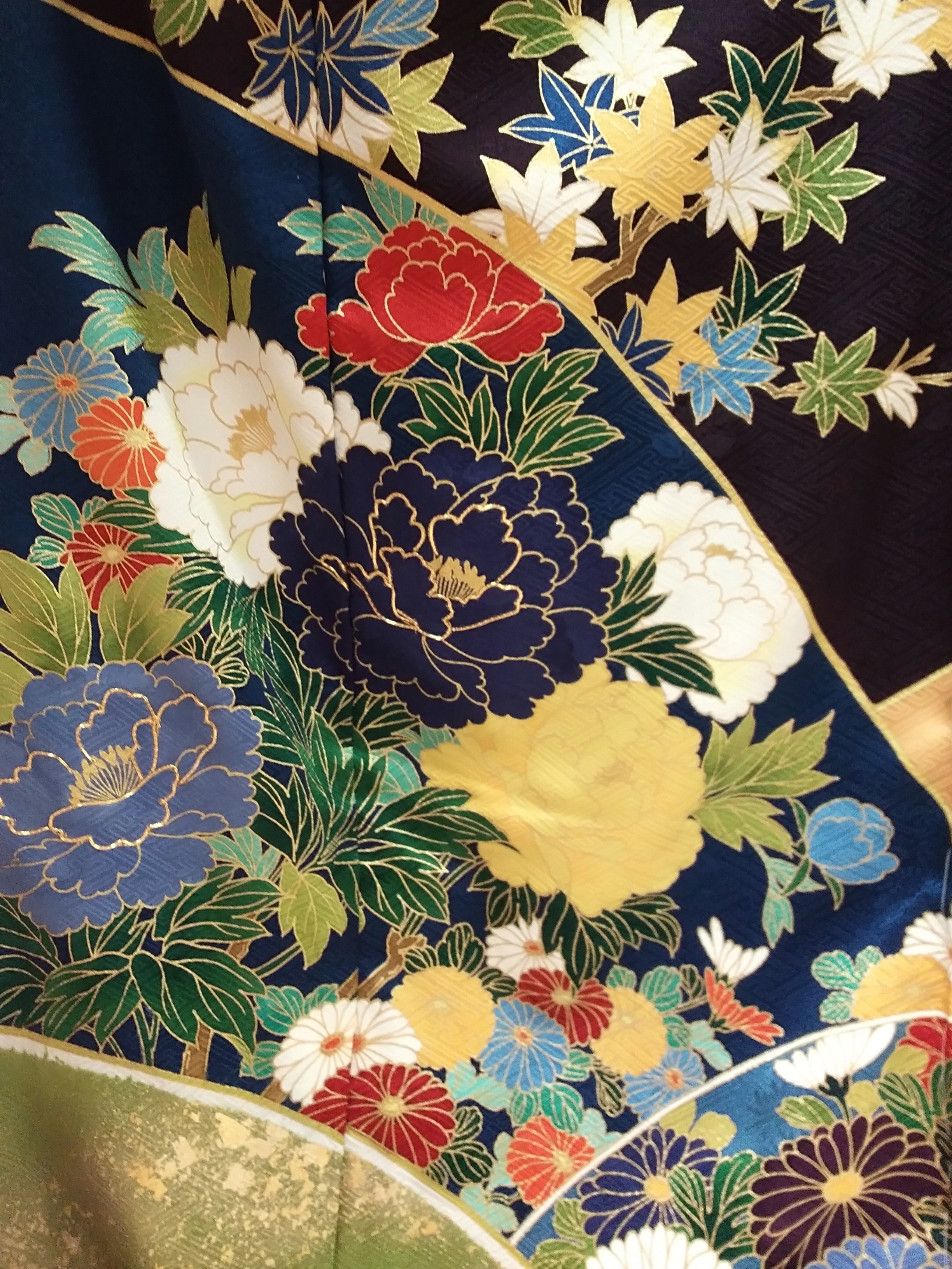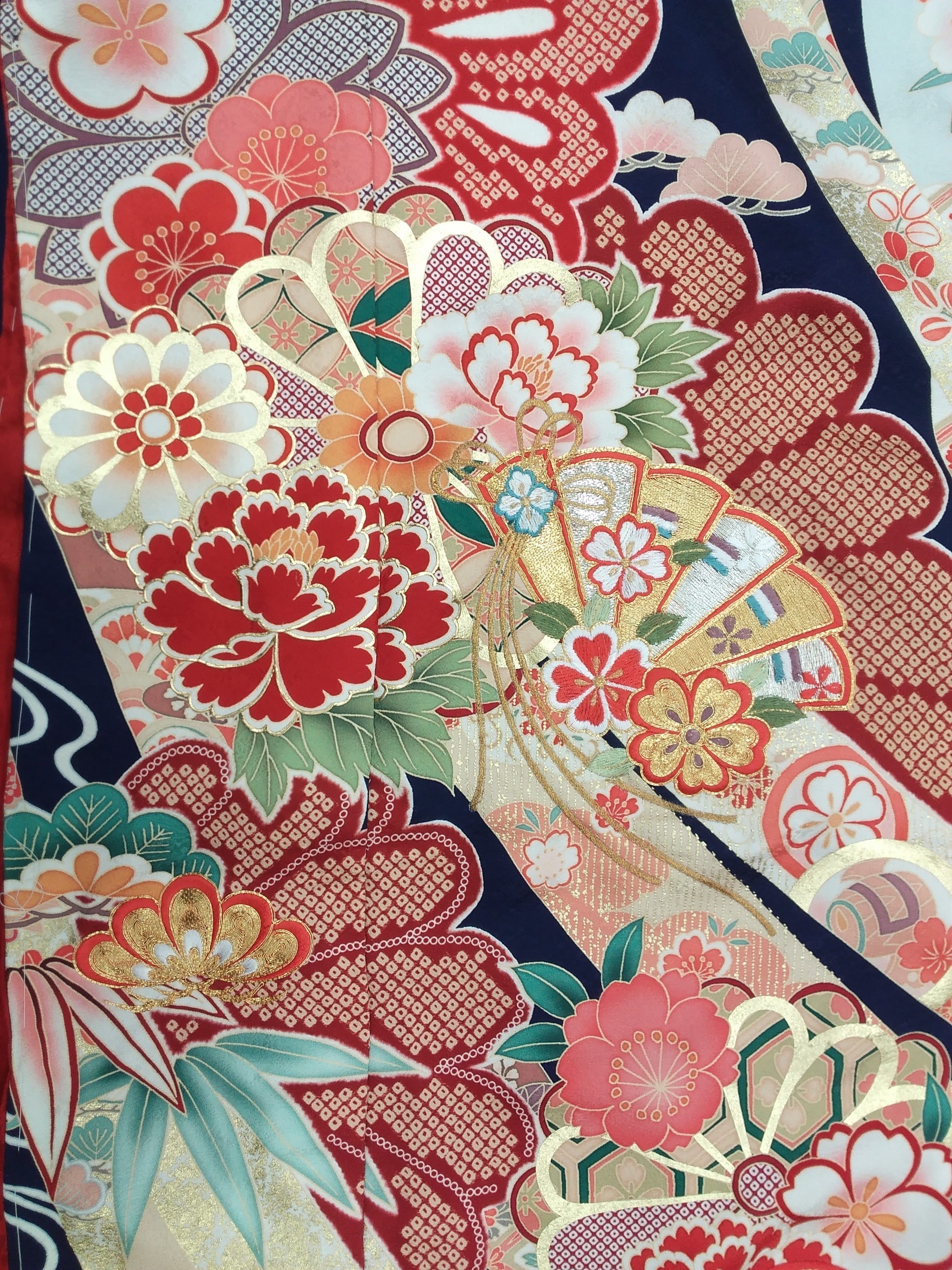 こちらは新潟の青柳というブランドの素晴らしい手書きのお振袖。全体の柄の配置が素敵なので見て頂きたいお振袖です。