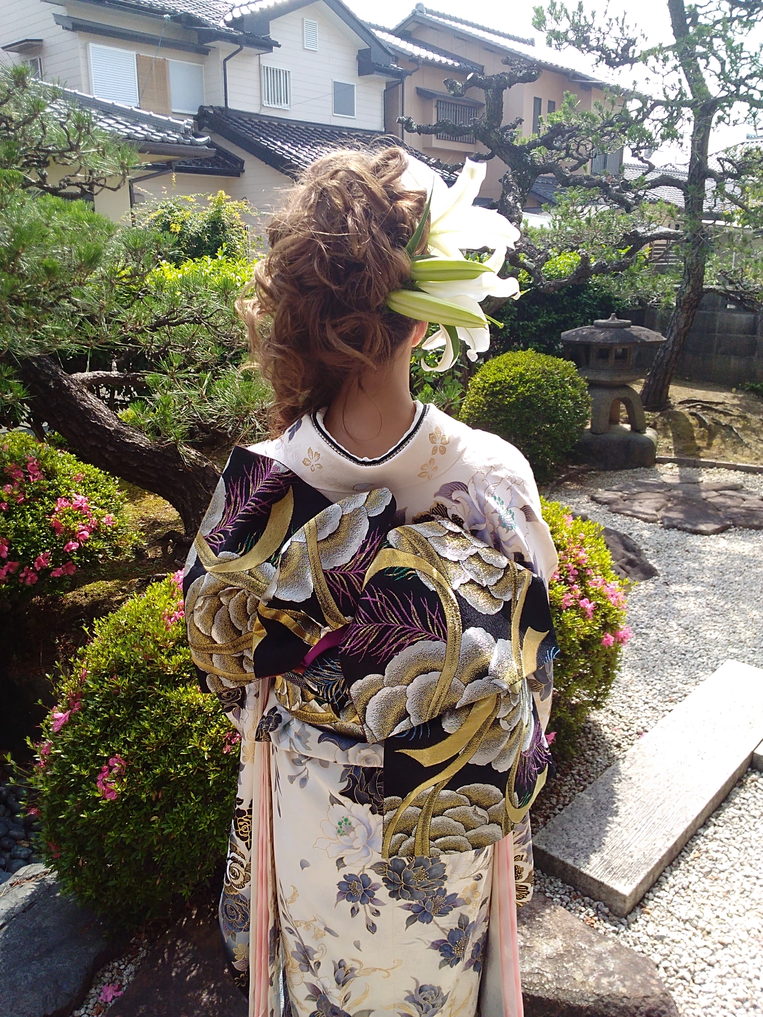 百合の生花をお持ち頂きましたので、ヘアーセットをさせて頂きました。