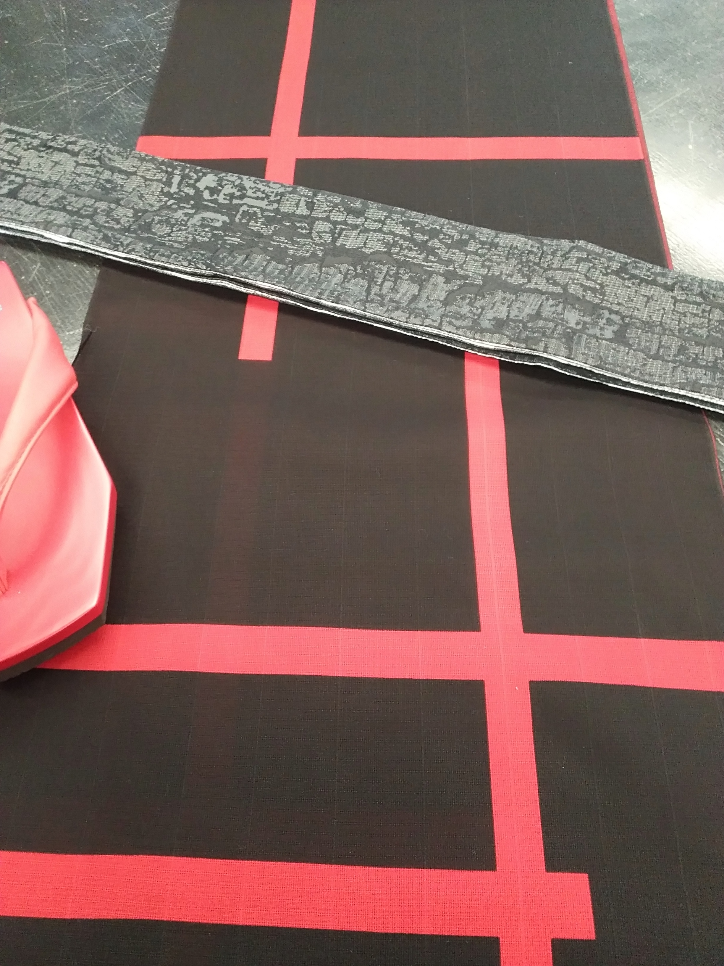 黒と赤の浴衣に、光沢のある帯を合わせて。