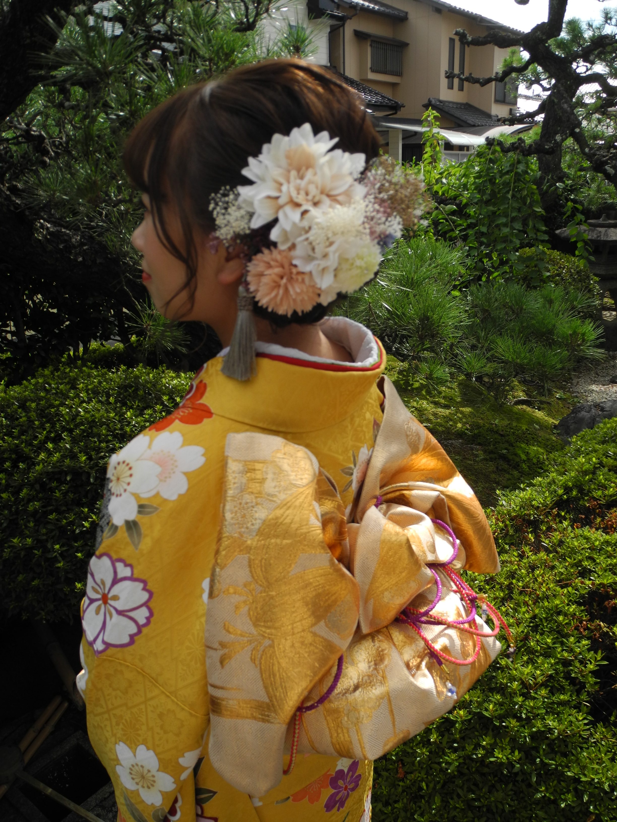 太陽のような笑顔が素敵な、可愛いお嬢さまは、黄色のお振袖を選ばれました。