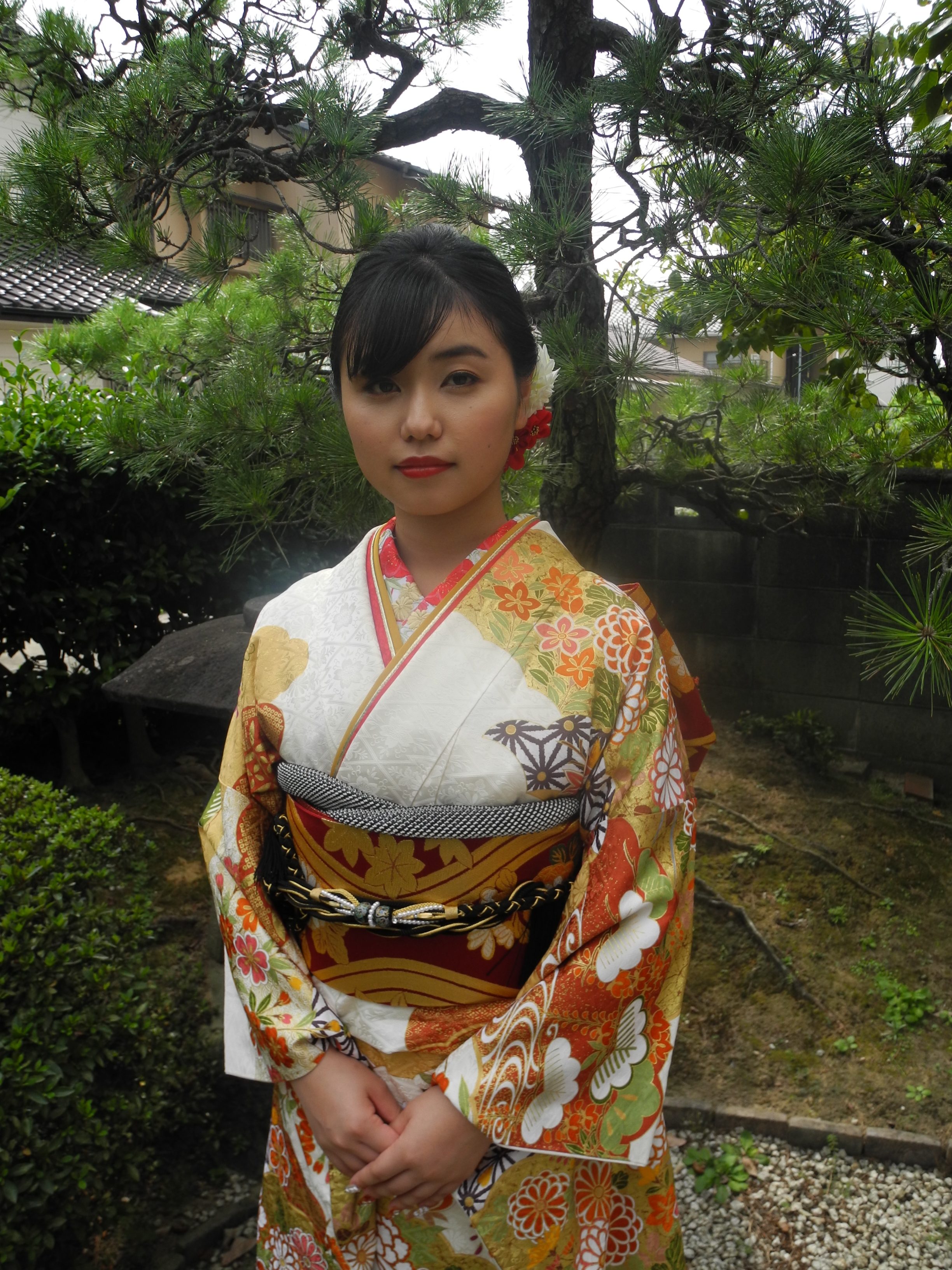 白地にゴージャスな古典柄のお振袖を選んで頂きましたお嬢様。