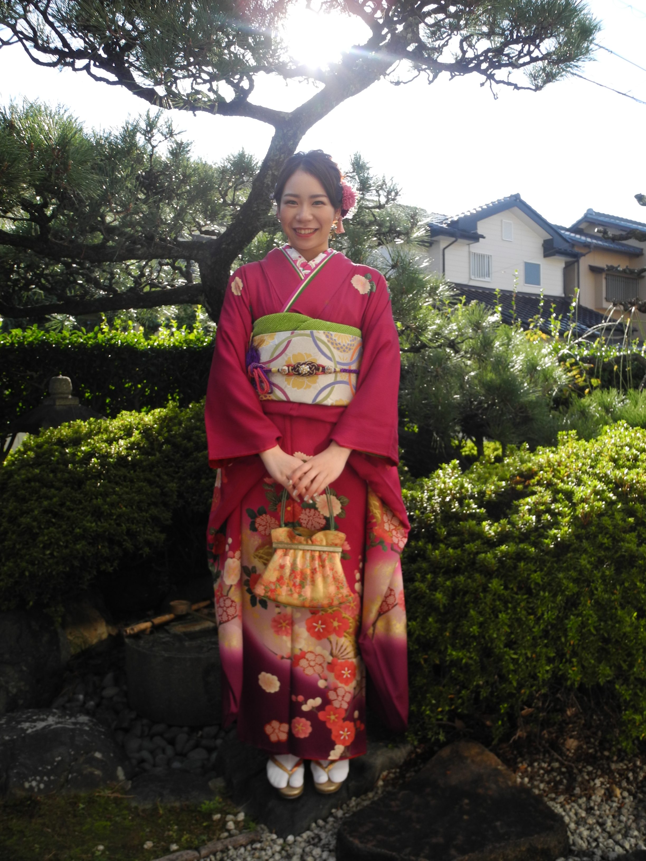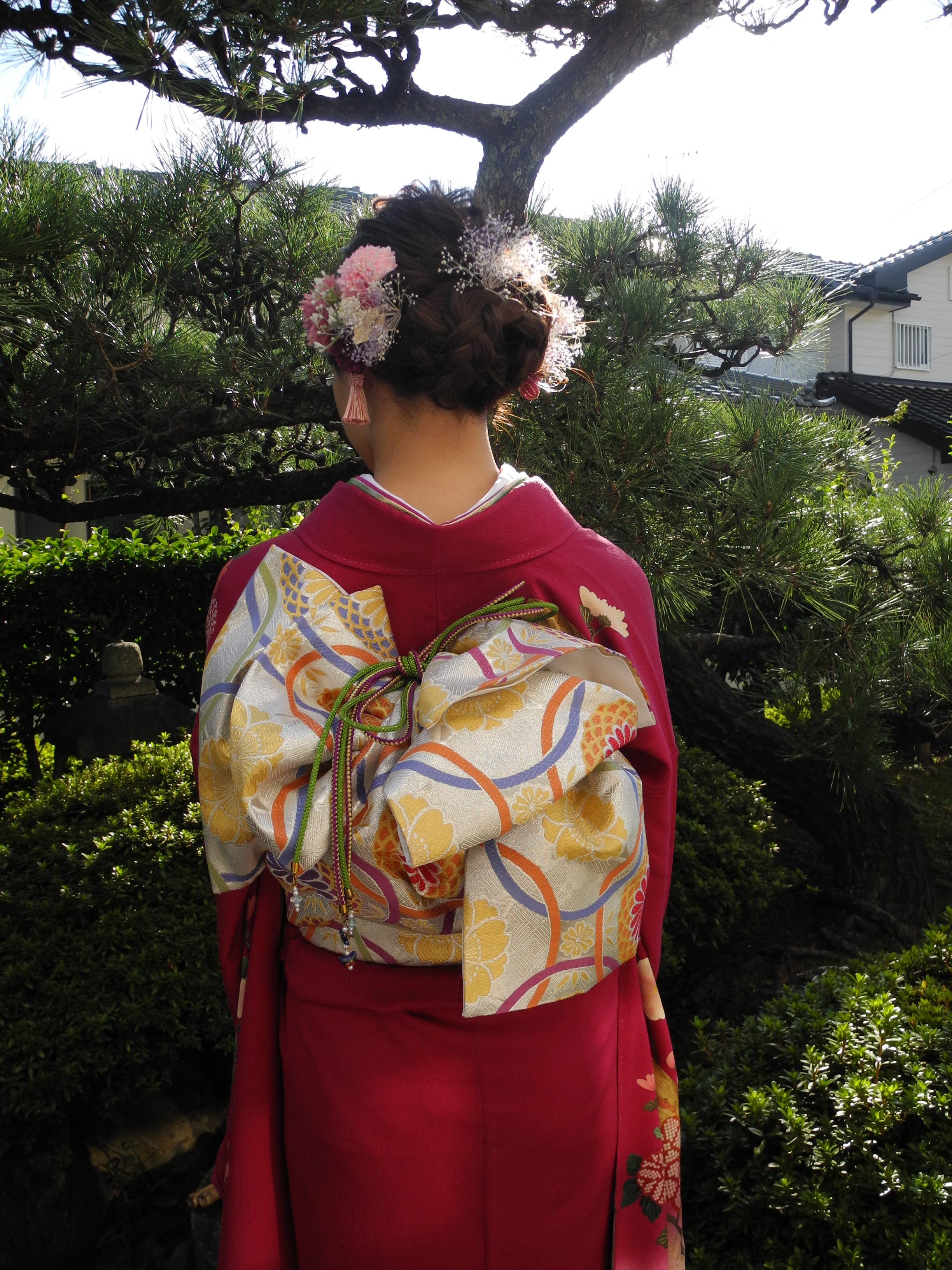 お母様のマゼンタ色のお着物は、当店にてお母様が成人の際に揃えて頂いたもの。
