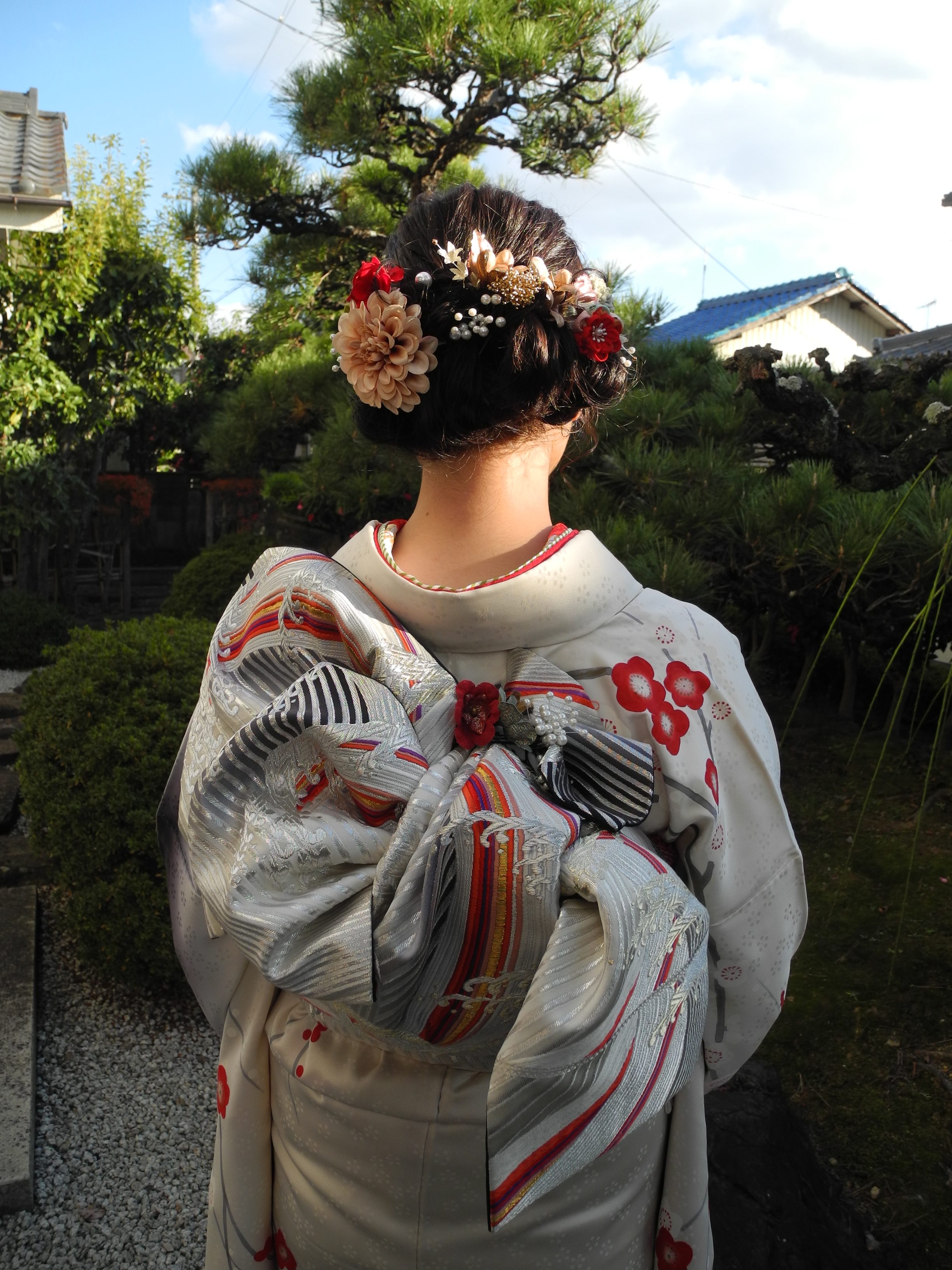 髪飾りも色味を押さえたコーディネイト。