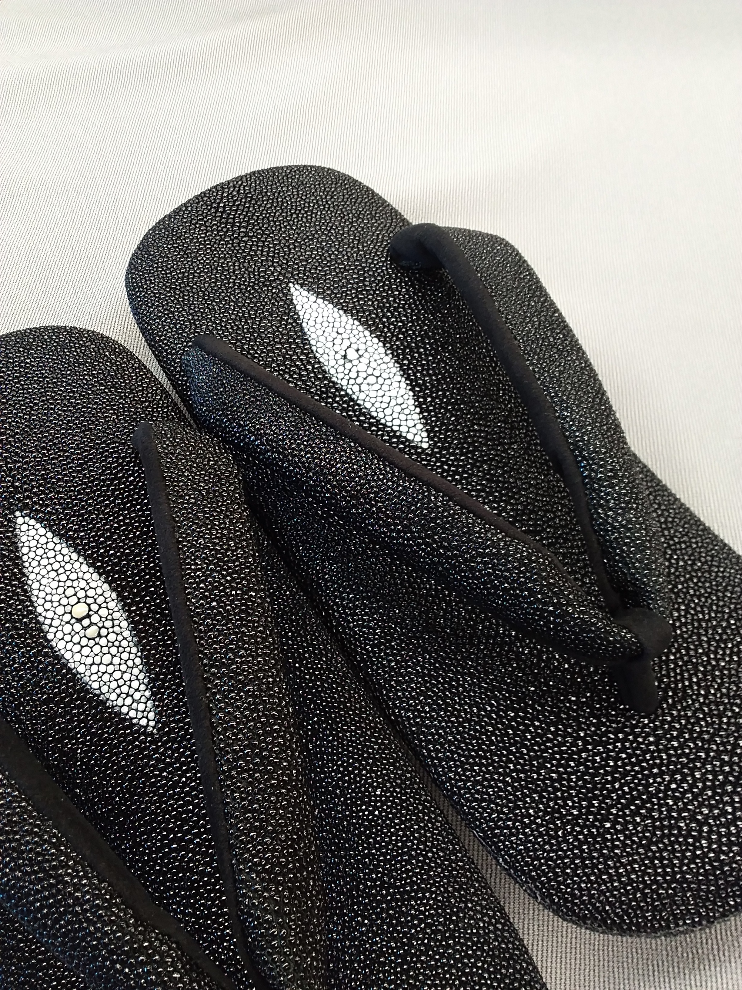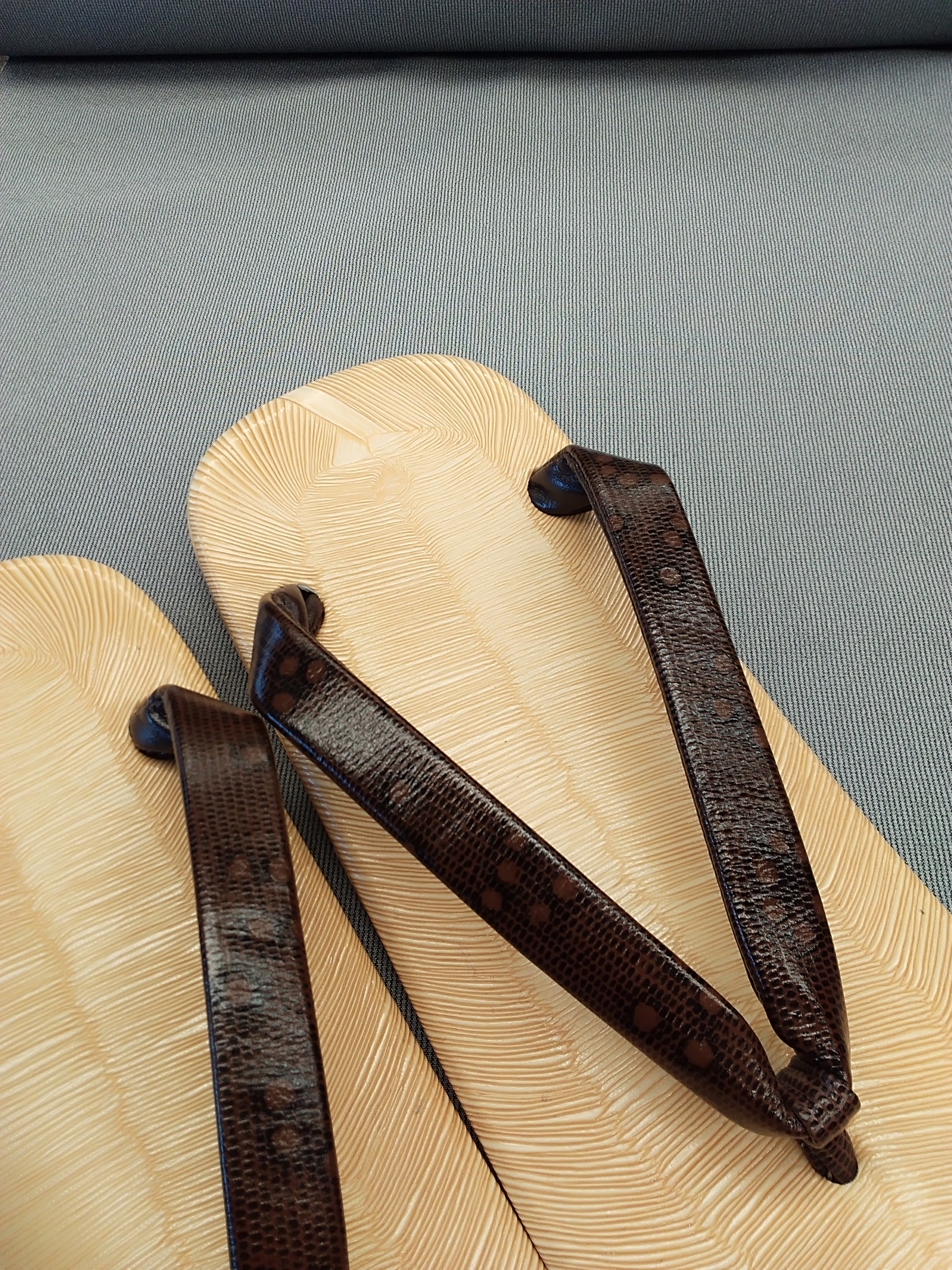 この草履のように、鼻緒のついている指先と中卯部分の切込みから水が浸みてしまうのです。