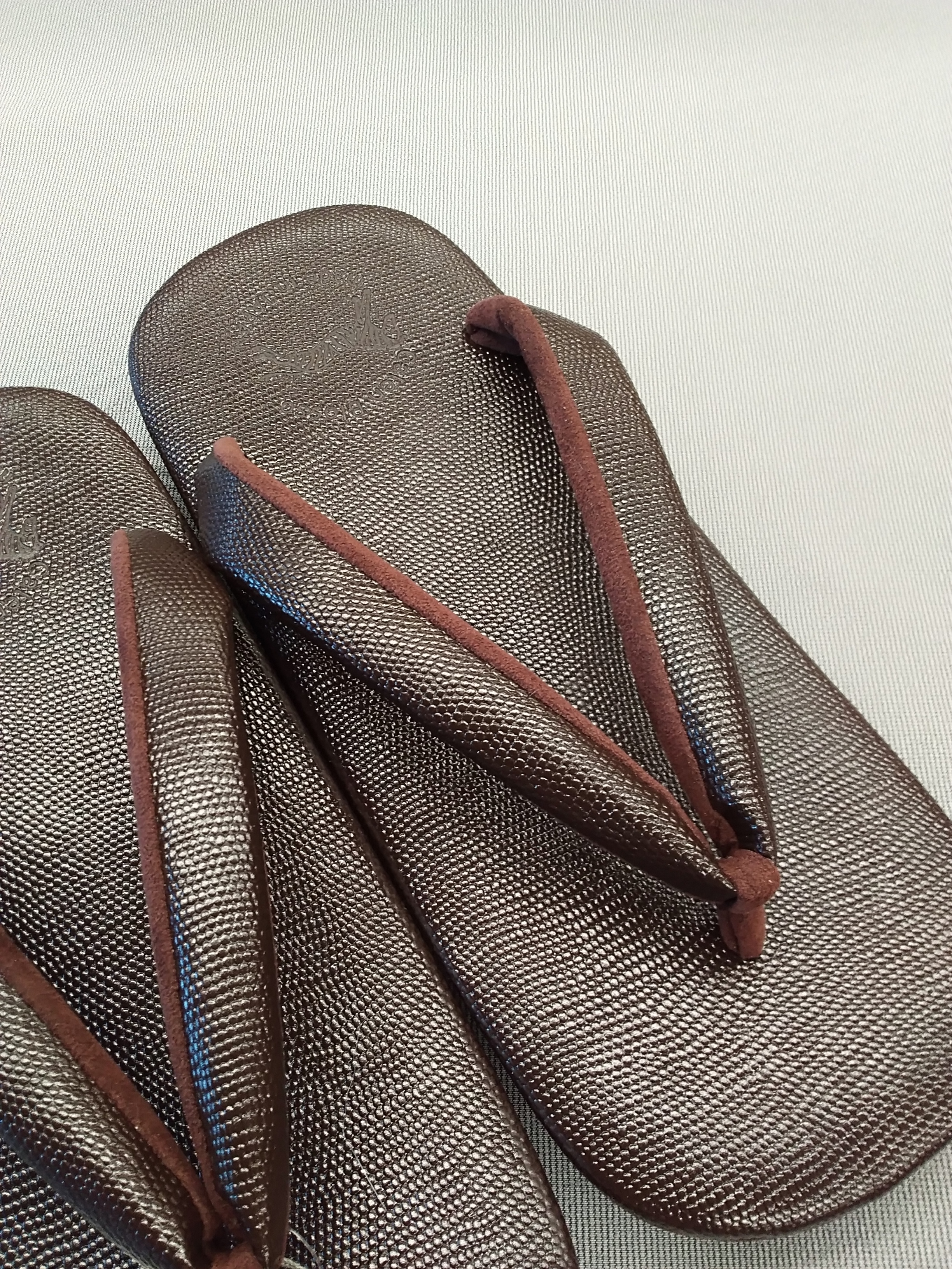 女性用の一般のお草履は底の部分がコルクでできており、雨天時や、水分の多い場所をあるくと、中まで水が染み込むため、しばらく新聞紙の上に置いて乾かすという事が必要となってきます。そこで、雨の日にも活躍するカレンブロッソというブランドの草履がオススメでしたが、メンズでもオシャレな草履が入荷しましたのでご紹介。