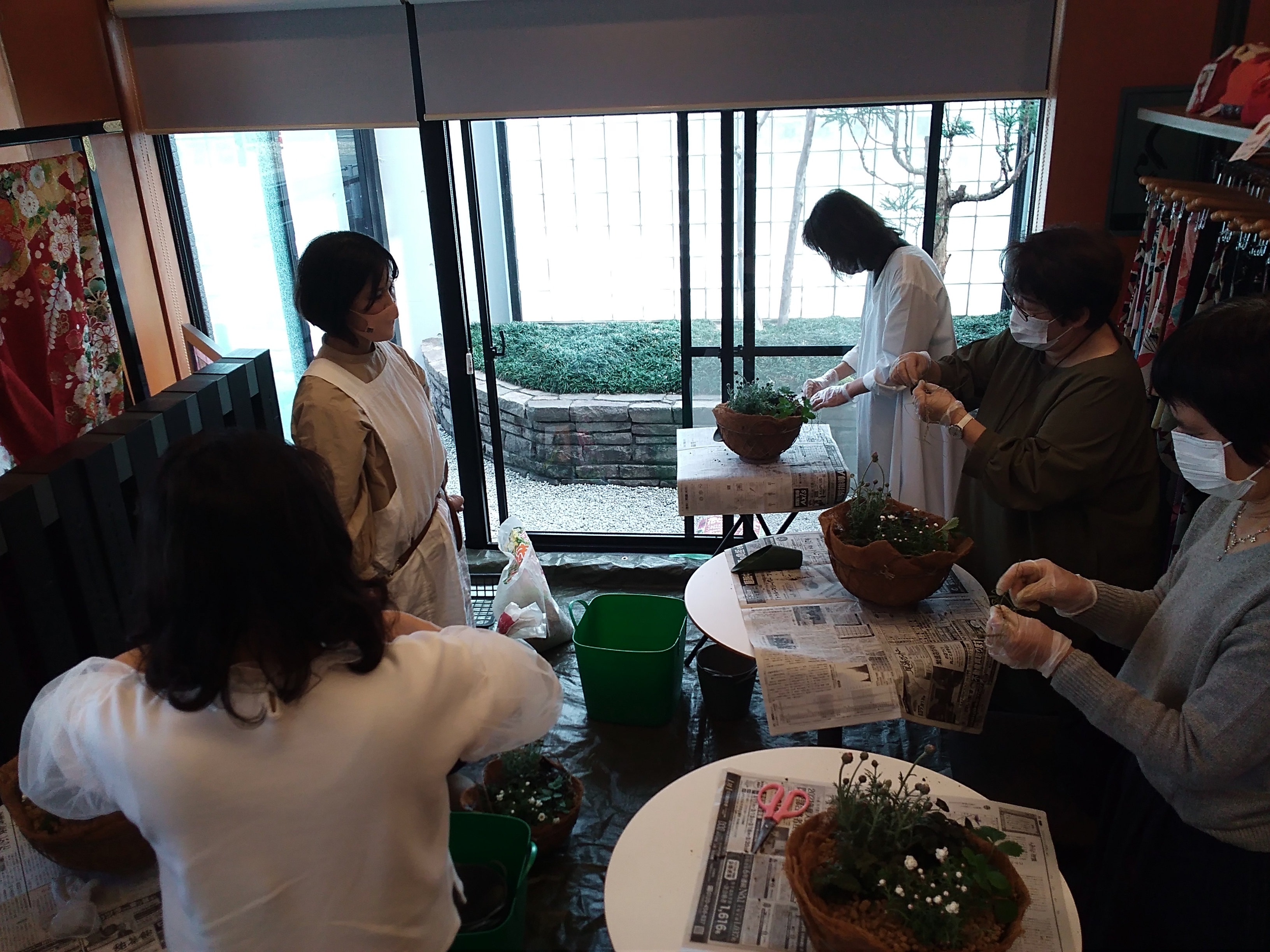 今日は花の寄せ植えの教室でした。