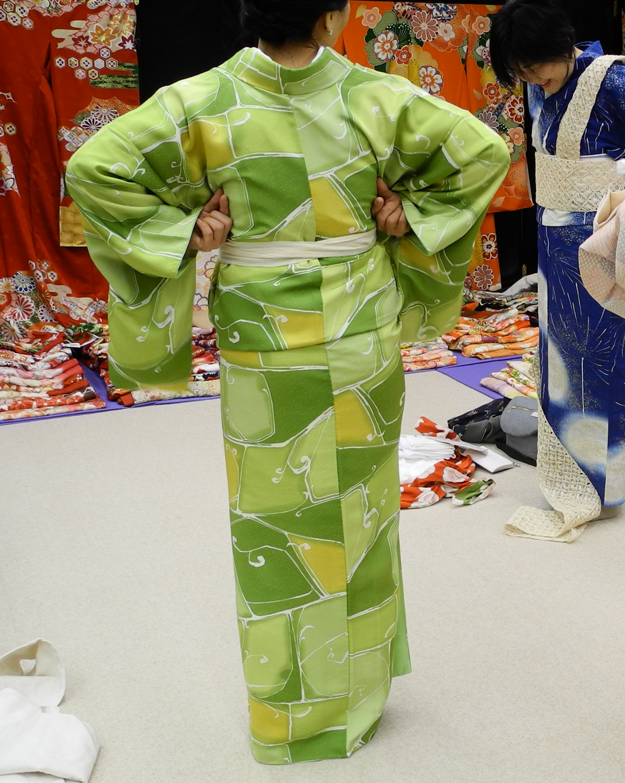 例えば、私はこんな黄色と黄緑と緑のド派手な小紋を着ていましたが、白い帯ぐらいしか合わせられるような帯を持っていないし、🍋ライムちゃんと名前を付けてまで気に入っていましたが・・・着物の印象が強すぎて、コーディネイトの幅が広がりにくいのであまり着ていませんでした。
