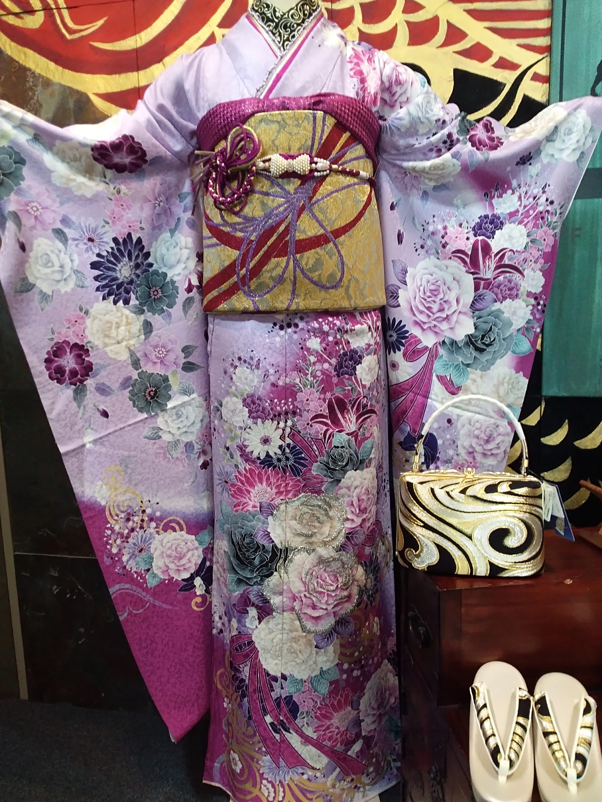 今回は紫をベースとした、薔薇のお振袖コーデをご紹介。