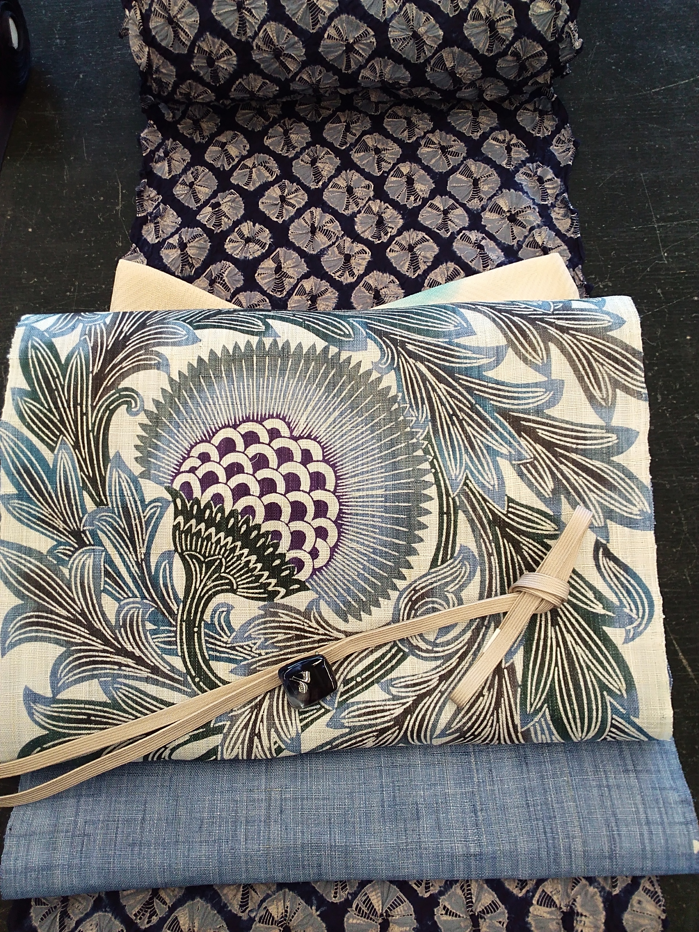 ③京都の藤井絞りの板締め絞りに合わせて、シックです。