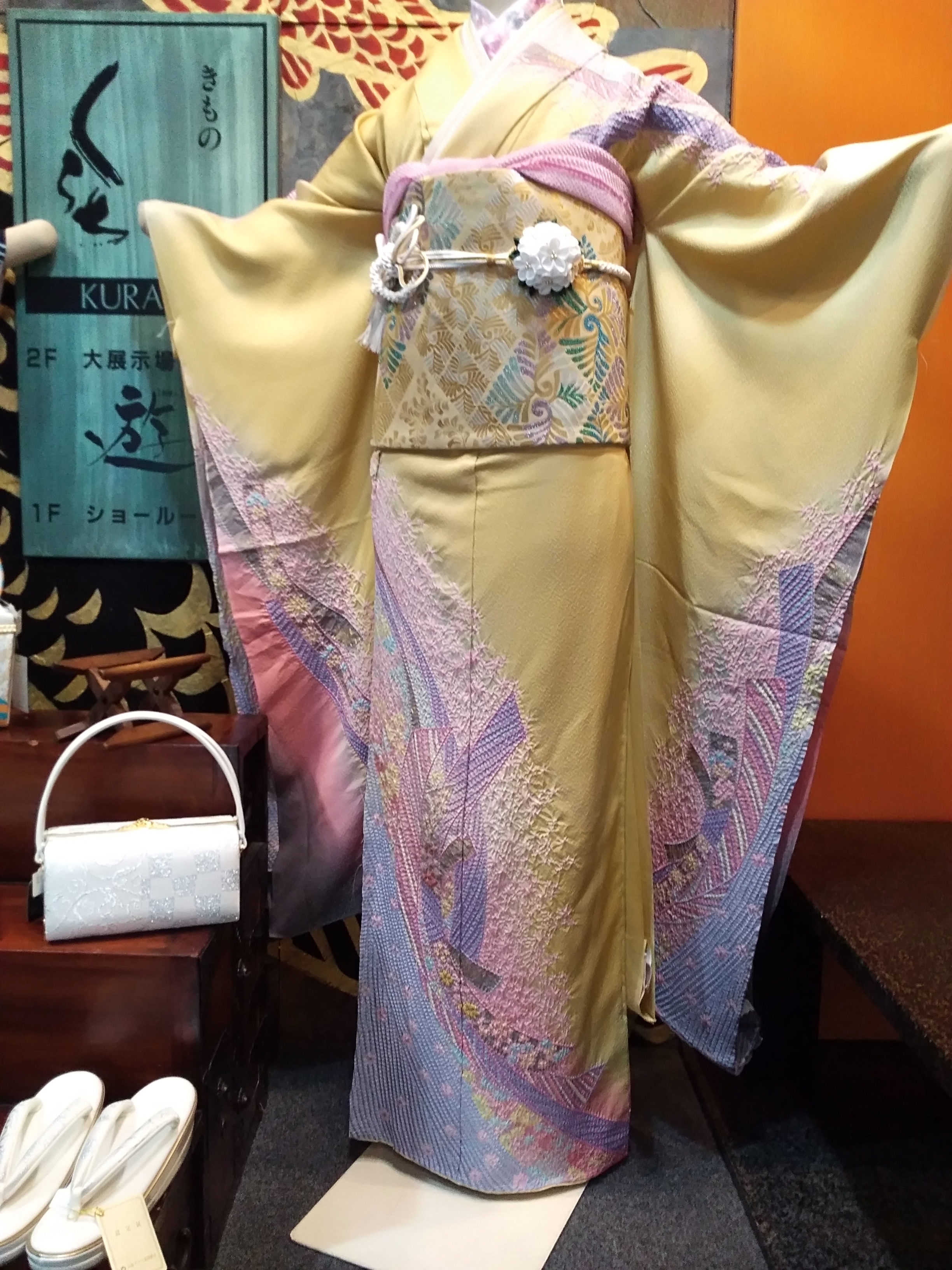 クリーム色とパステルカラーの絞りのお振袖。