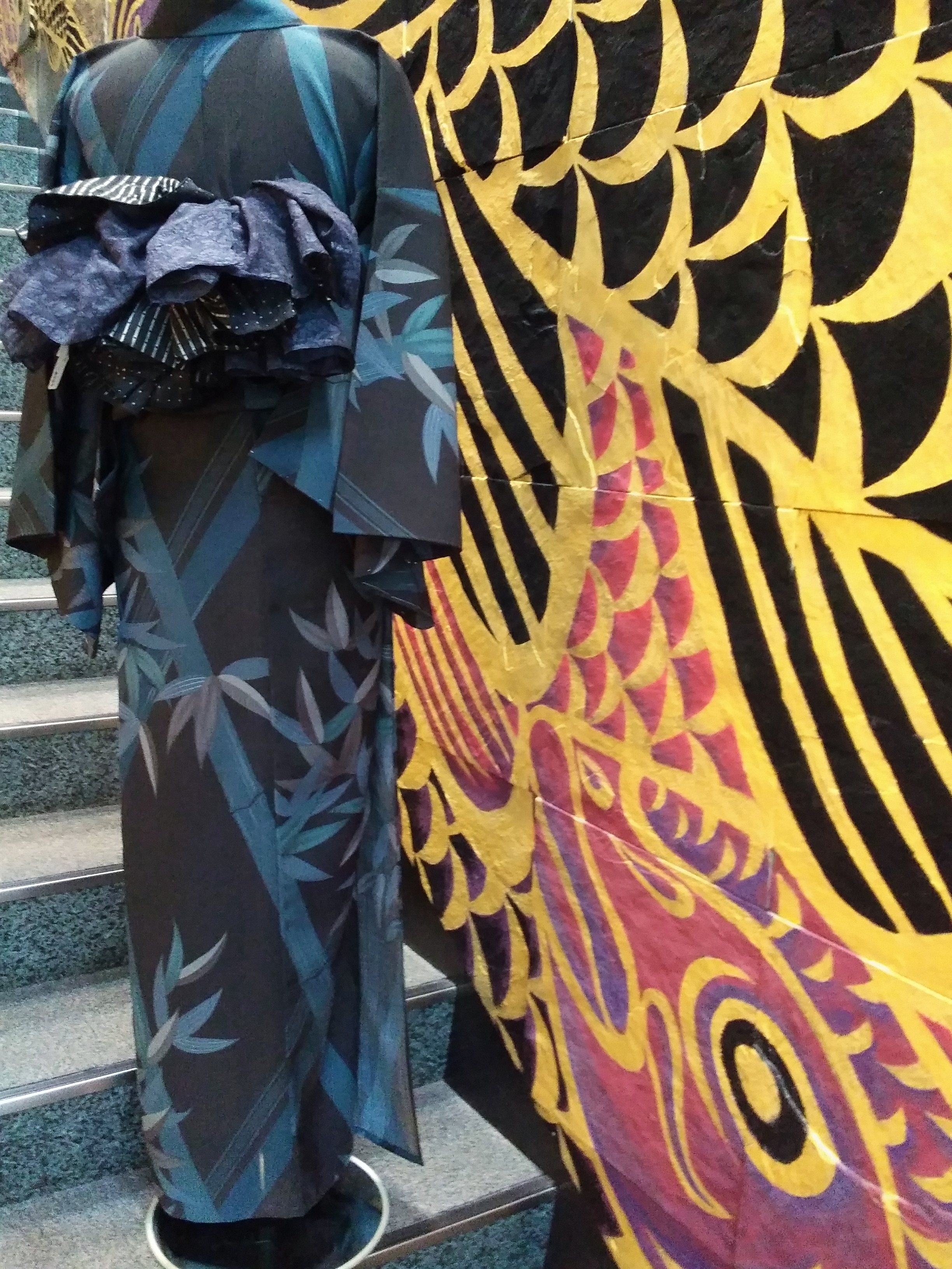 兵児帯でひだをいっぱいのふわふわ結びにしてみました。若い子もこんな結び方なら、渋くなりすぎず良いと思います♪