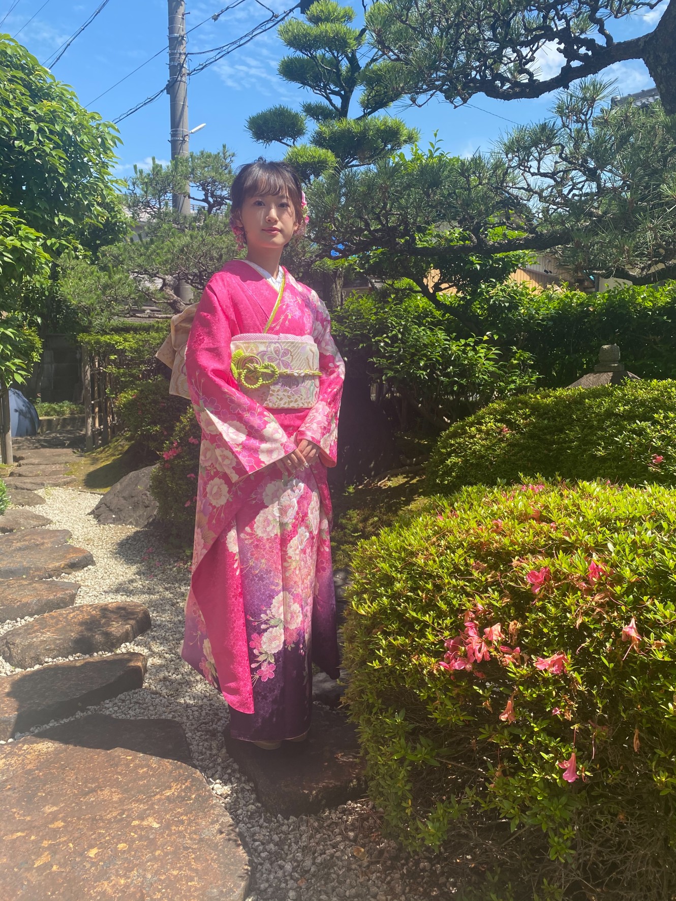 濃いピンク色のお振袖がとってもお似合いのお嬢様。