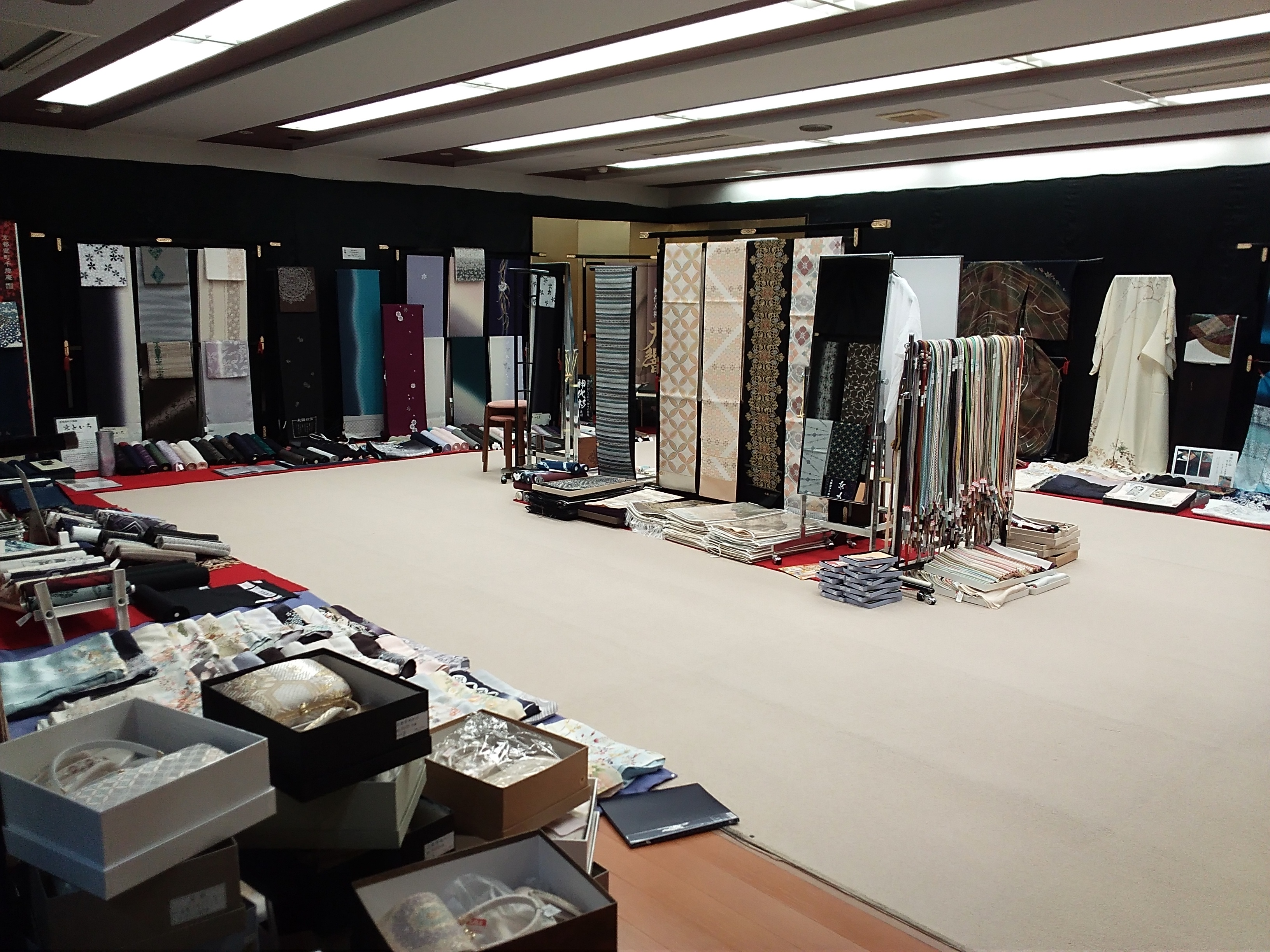 天響 中路先生来店中。手書きの帯や着物がオリジナルで作れます。