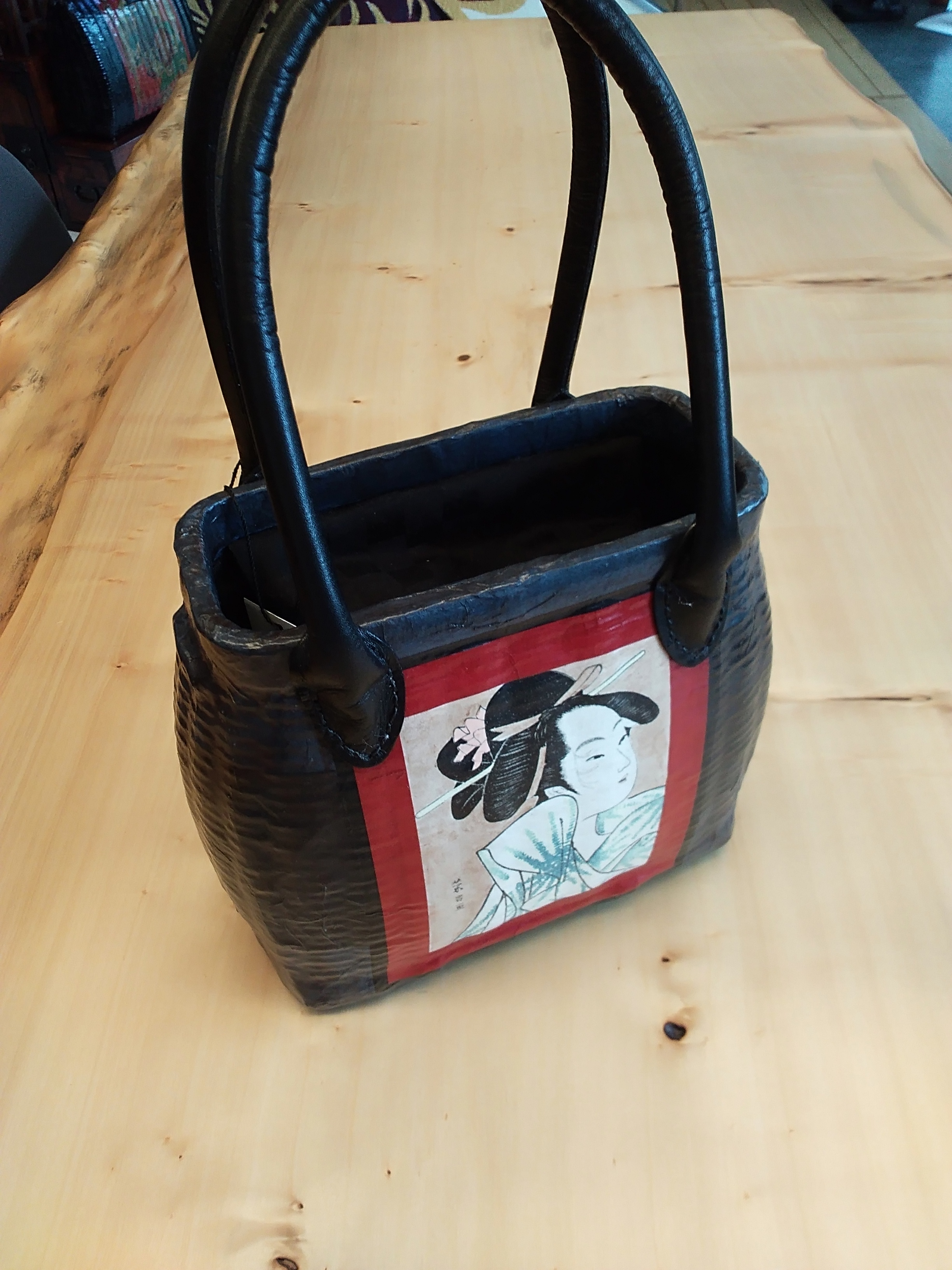 こちらは魚籠(びく)といって、魚を釣ったら腰に入れておく籠から作ったバッグです。