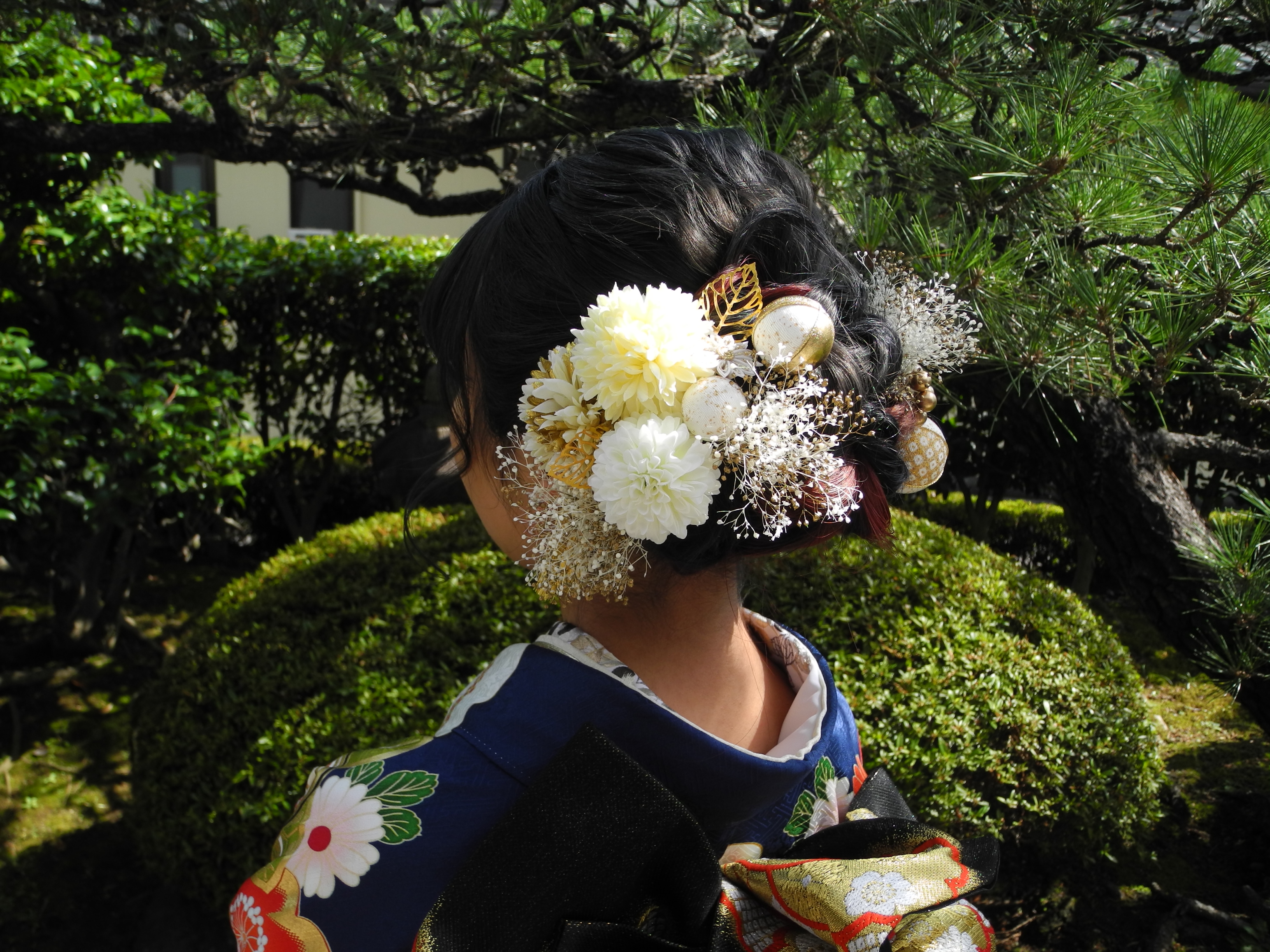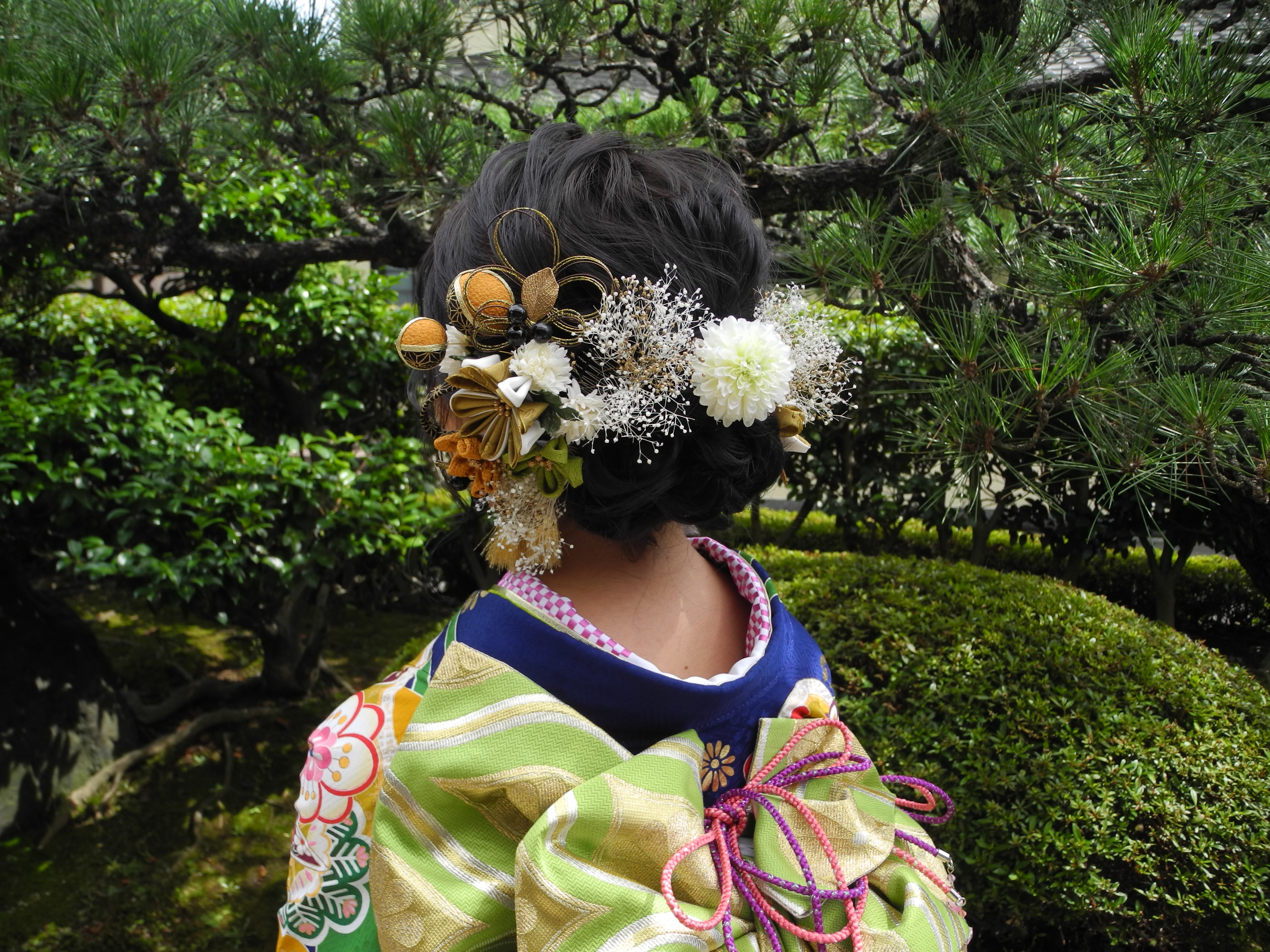 当店ではお振袖や帯や小物は事前に用意していただきますが、髪飾りは流行があるので、前撮り撮影時に髪型と一緒に選んで頂くのがちょうど良いと思います。