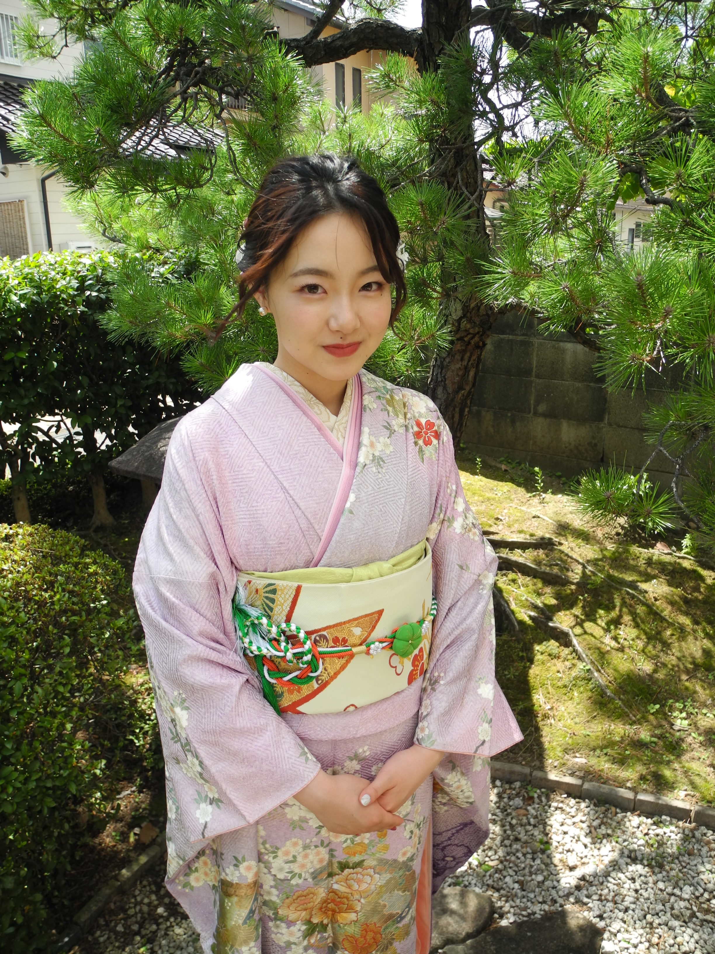 藤色のお母様のお振袖に、帯や小物を新しく新調していただきました。