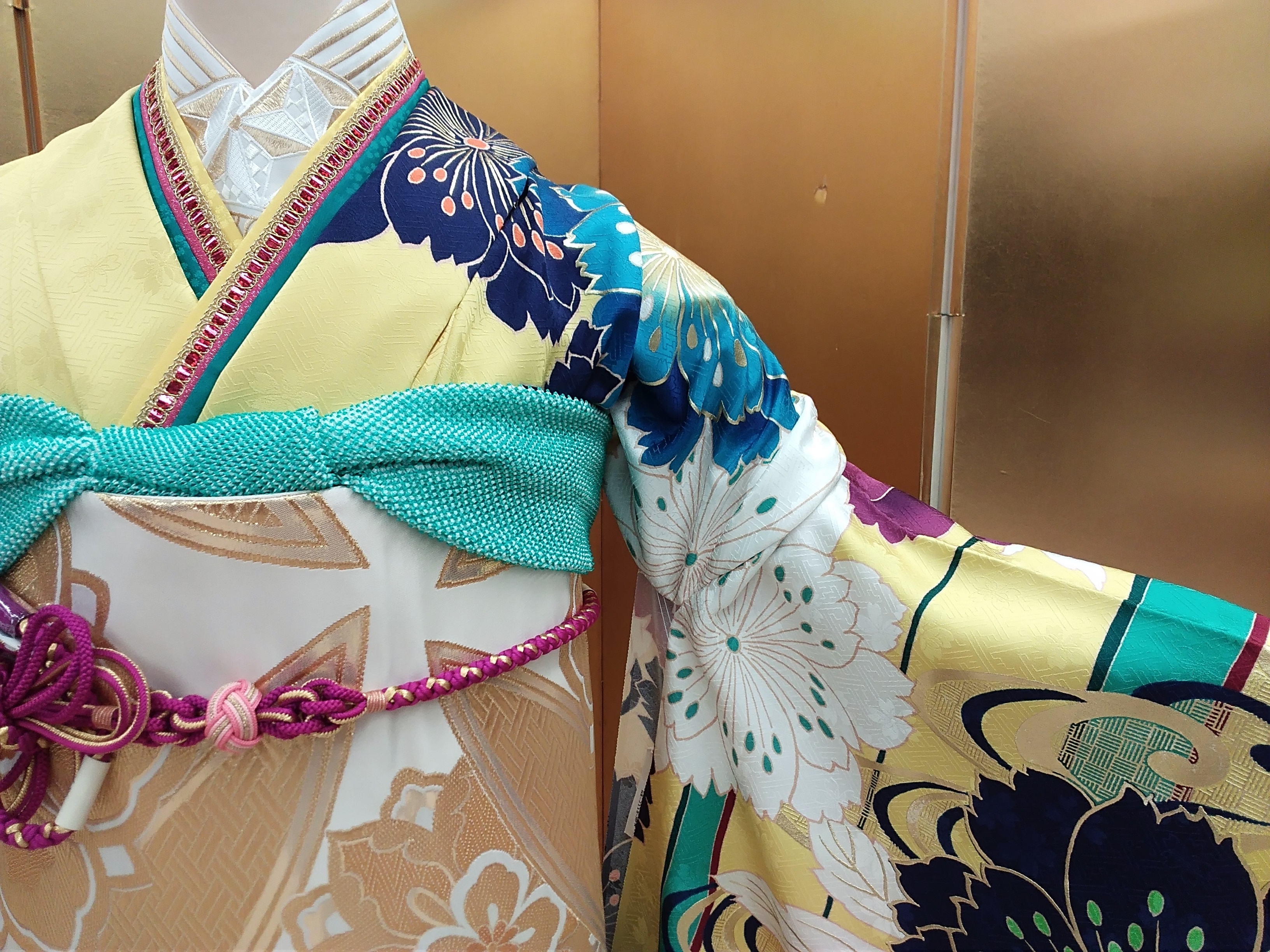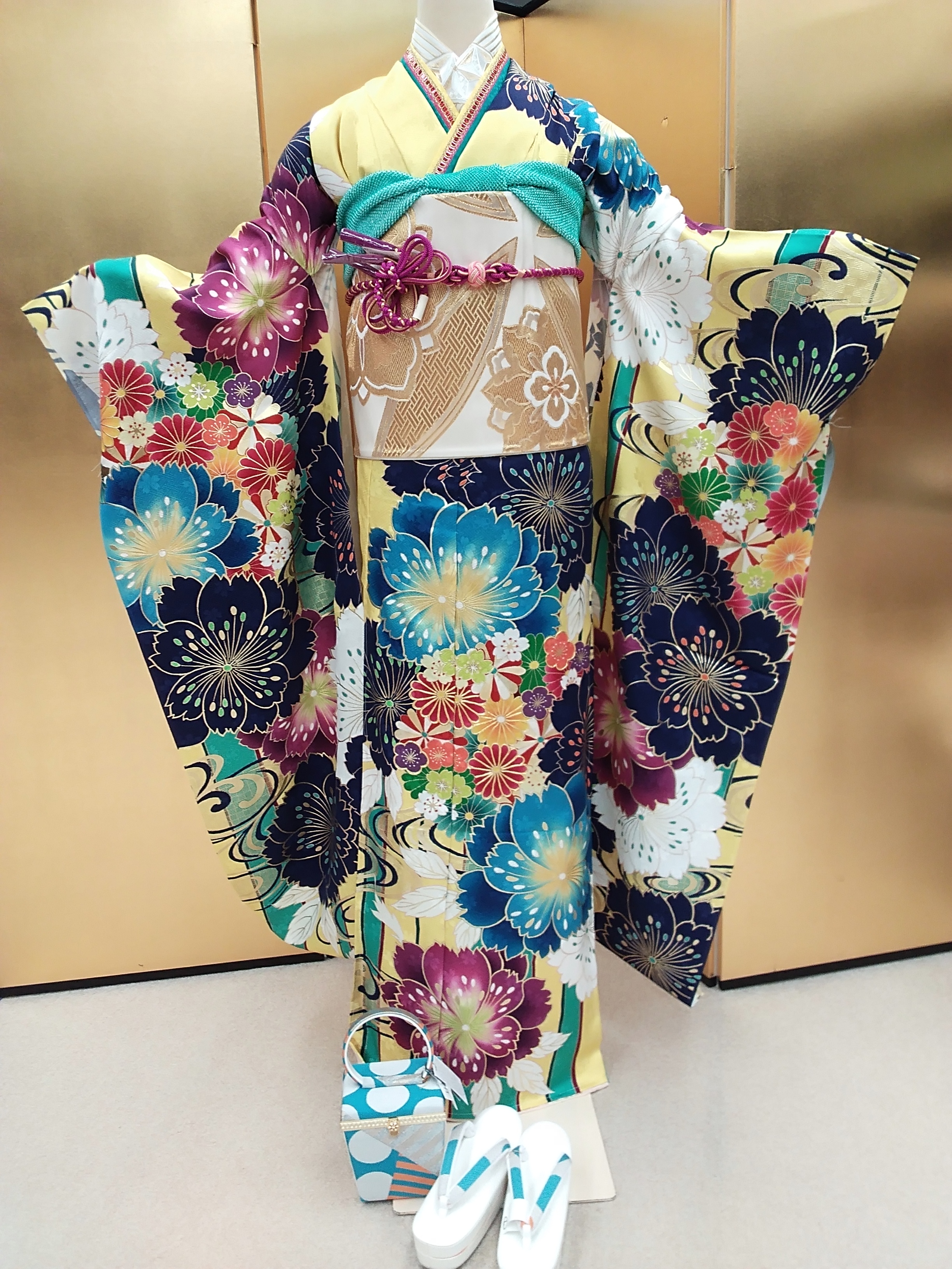 ”さくらちゃん”というお名前か、スケートボーダーもしくは、体育会系のお嬢様に着て頂きたいなぁ。と妄想しながら、振袖コーデしてみました。