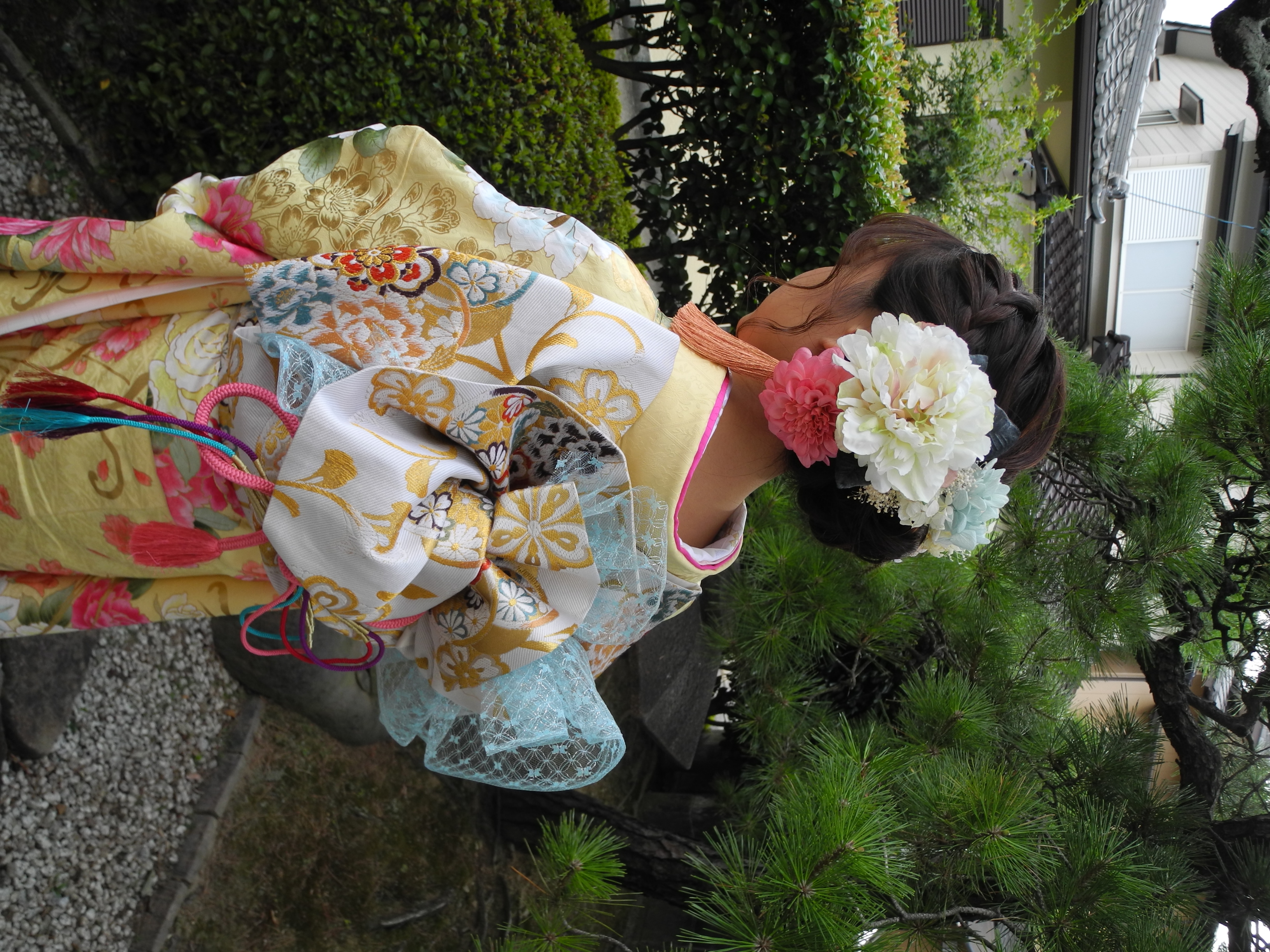 2022年成人 お嬢様 前撮り撮影会 2021 8/23 2021年8月23日 薔薇の柄の振袖は、黒、赤、紫、青、といった強めの色合いの振袖が多いのですが、レモンイエローにピンクや水色、黄色で描かれた薔薇柄のお振袖を選んで頂いたお嬢様。 目鼻立ちがはっきりしていて、笑顔も可愛いお嬢様にとってもお似合いです💗 髪の毛も振袖に描かれた薔薇と同じ色のたっぷりと大きな花をつけてゴージャスに。 帯飾りにレースリボンをつけて頂きました。レースリボンやレースの小物が今後流行りそう♪ いち早く取り入れて頂きました。 アルバムの出来上がりが楽しみです♪ よろしければシェアをお願いします 本日より、営業開始 振袖コーデ(松尽くし) 関連記事 【保存版】小物で変わる着物 振袖コーディネイトは小物で変わる!!! 成人式 お振袖前撮り撮影会 成人式 振袖前撮り撮影会 成人式お振袖 前撮り撮影会 成人式が終わったら・・・ 絞り加工のお振袖 新年明けましておめでとうございます。
