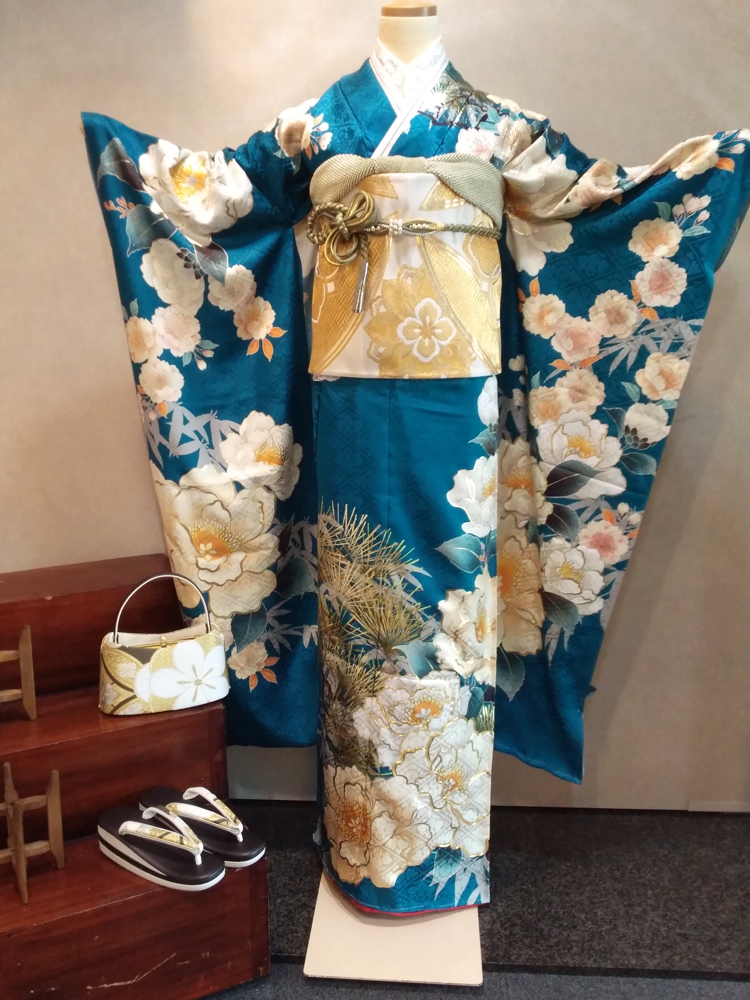 珍しい色が振袖でも入荷してきていますが、この納戸色はかなり珍しいです。