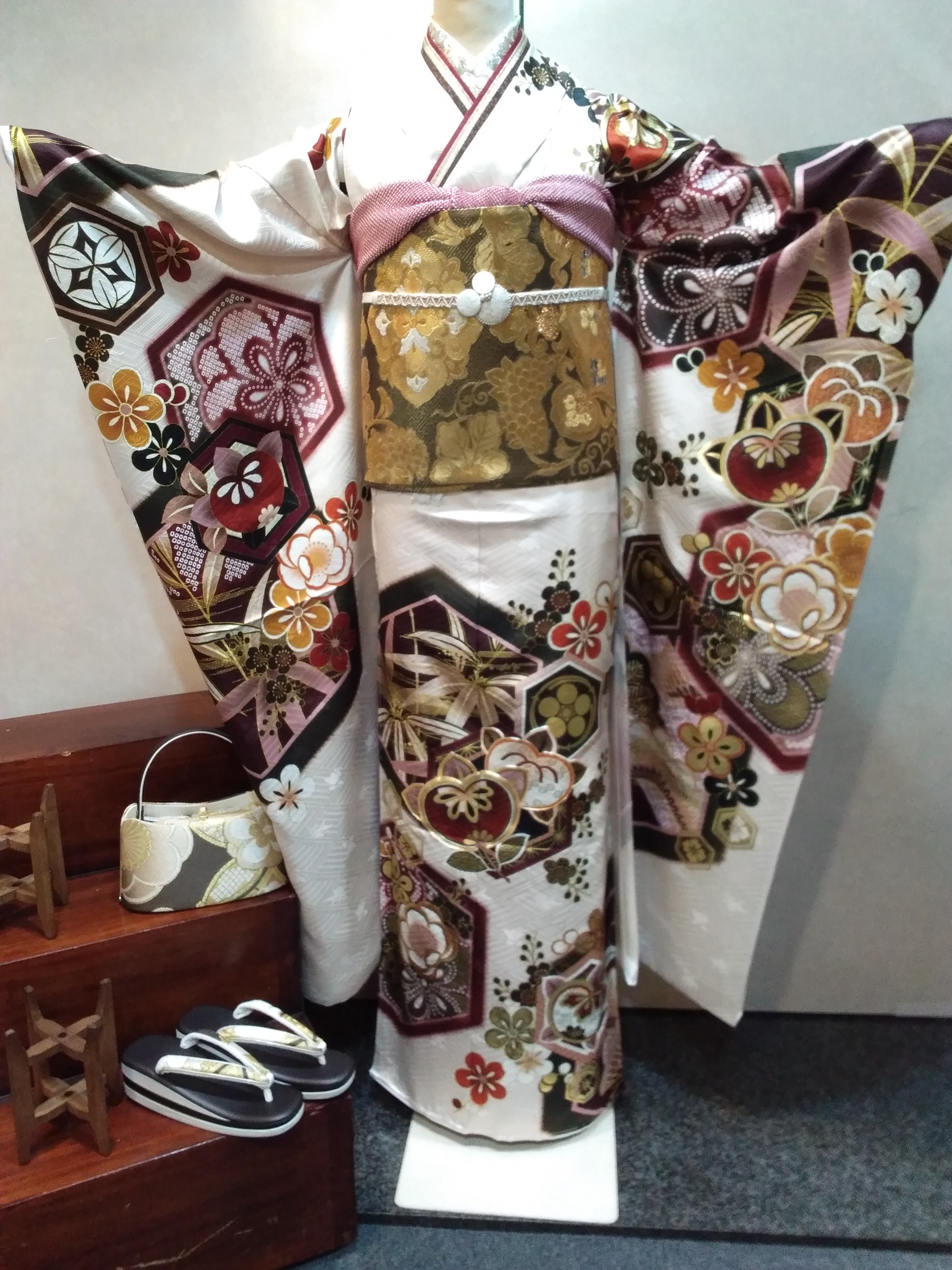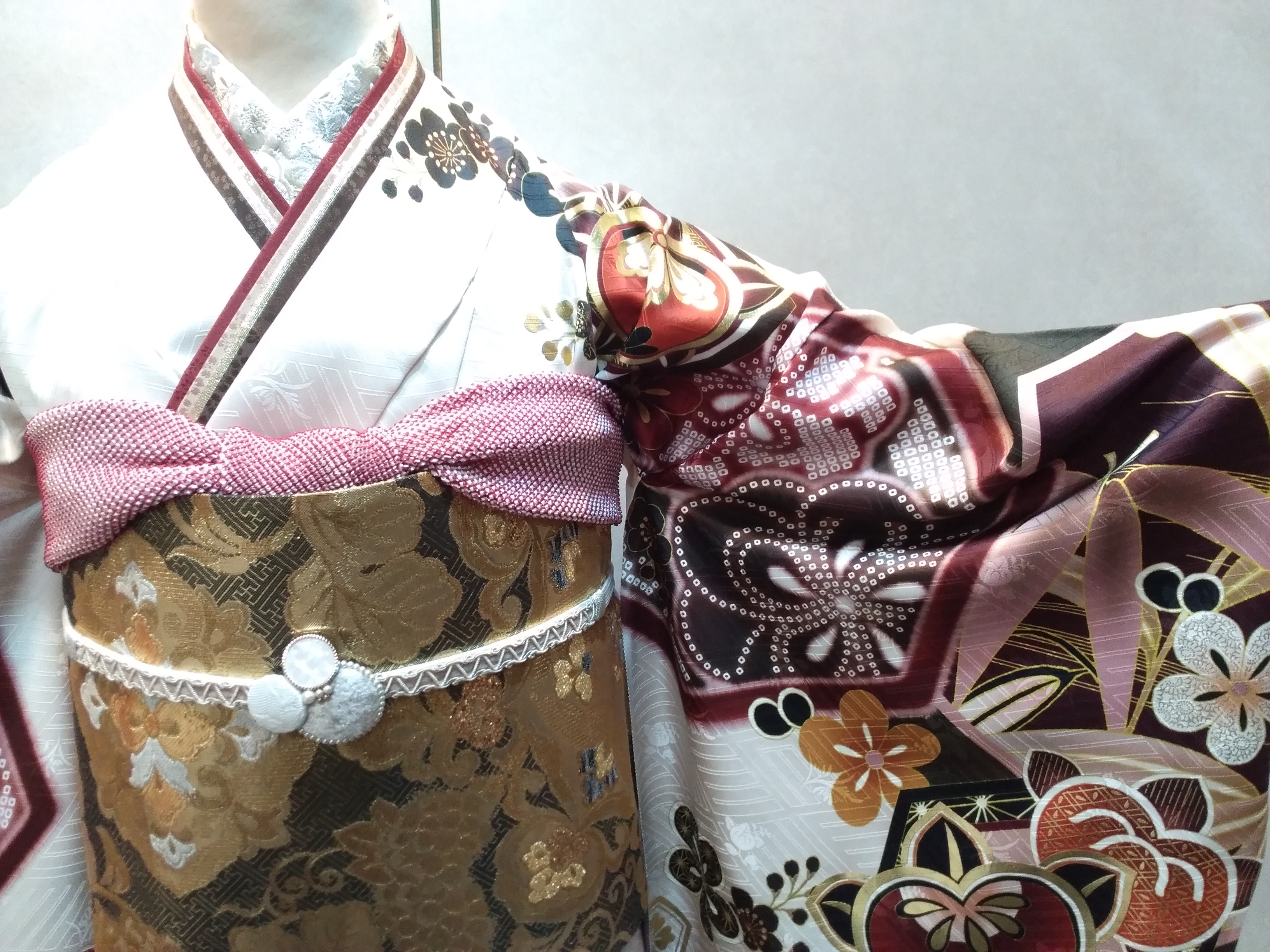 着物の購入、レンタル、お母様のお振袖等の小物合わせ、当日のお仕度(ヘアー・着付け)、前撮り撮影会も当店で行う事が出来ます。着物の洗い、仕立て直し等、お着物のことでしたらなんなりとご相談ください。