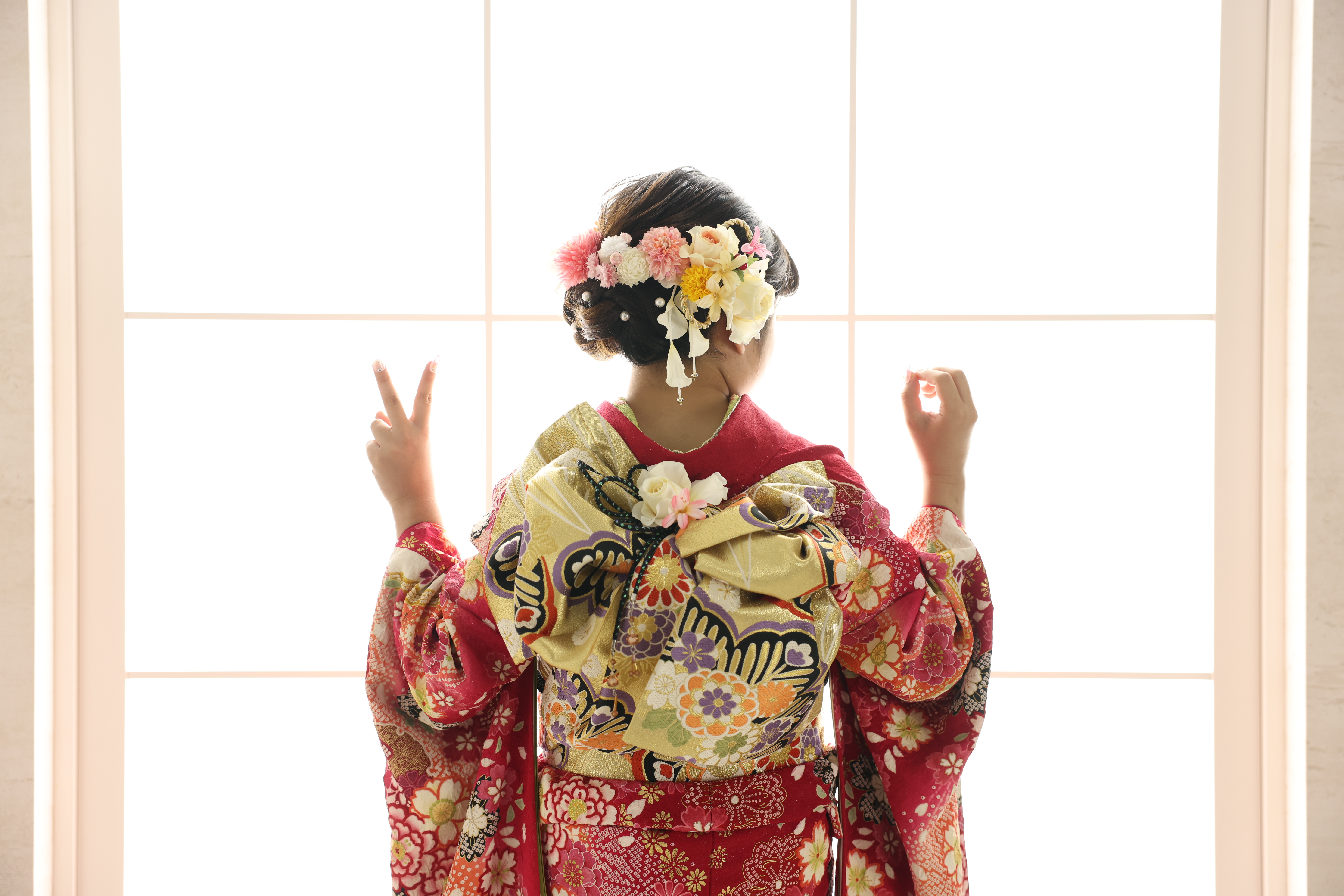 今回はピンク系~赤系のお振袖のお嬢様方です。