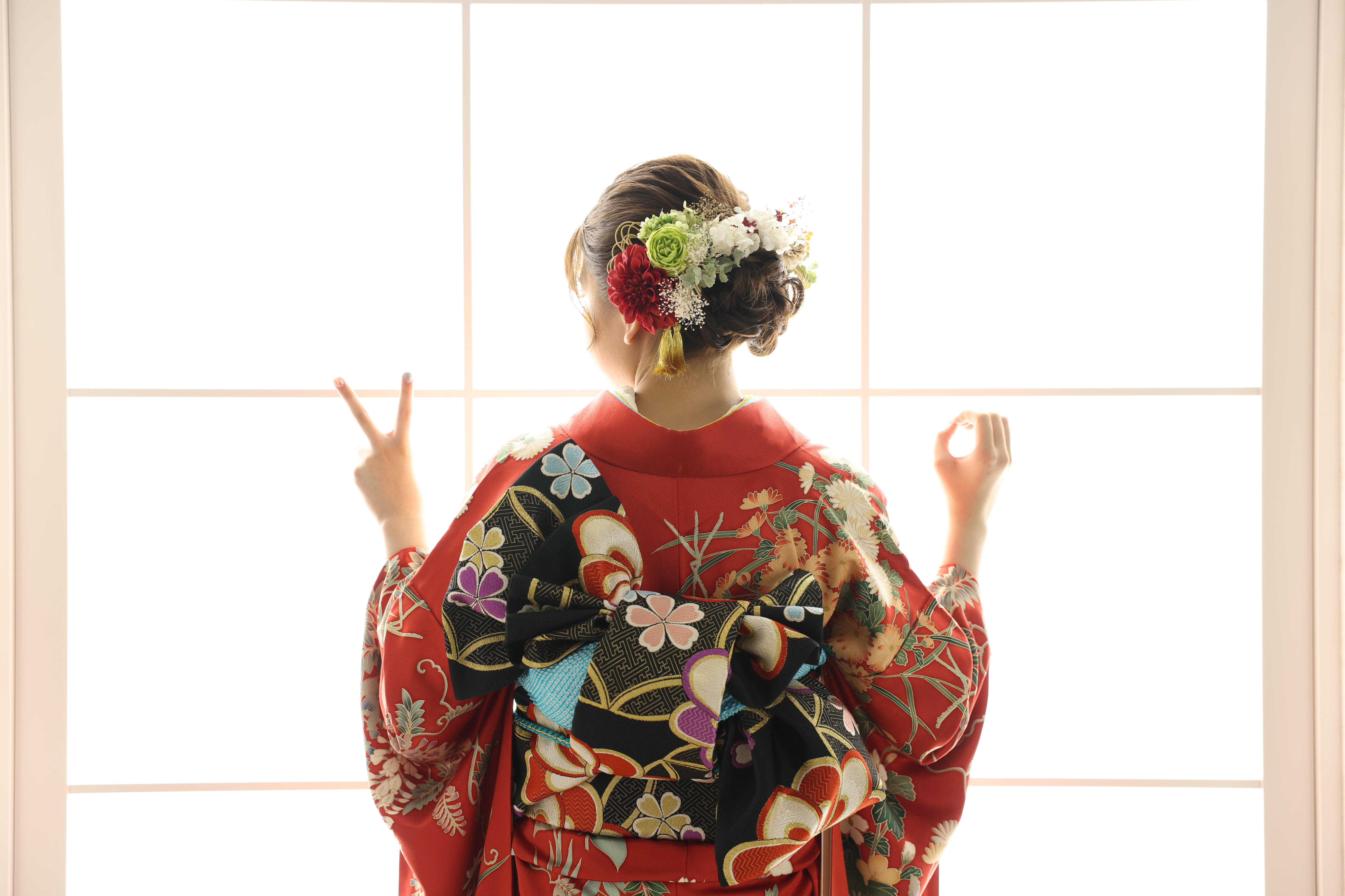 振袖は髪型や帯結びが華やかで、後ろ姿もとても可愛らしいですね~💕