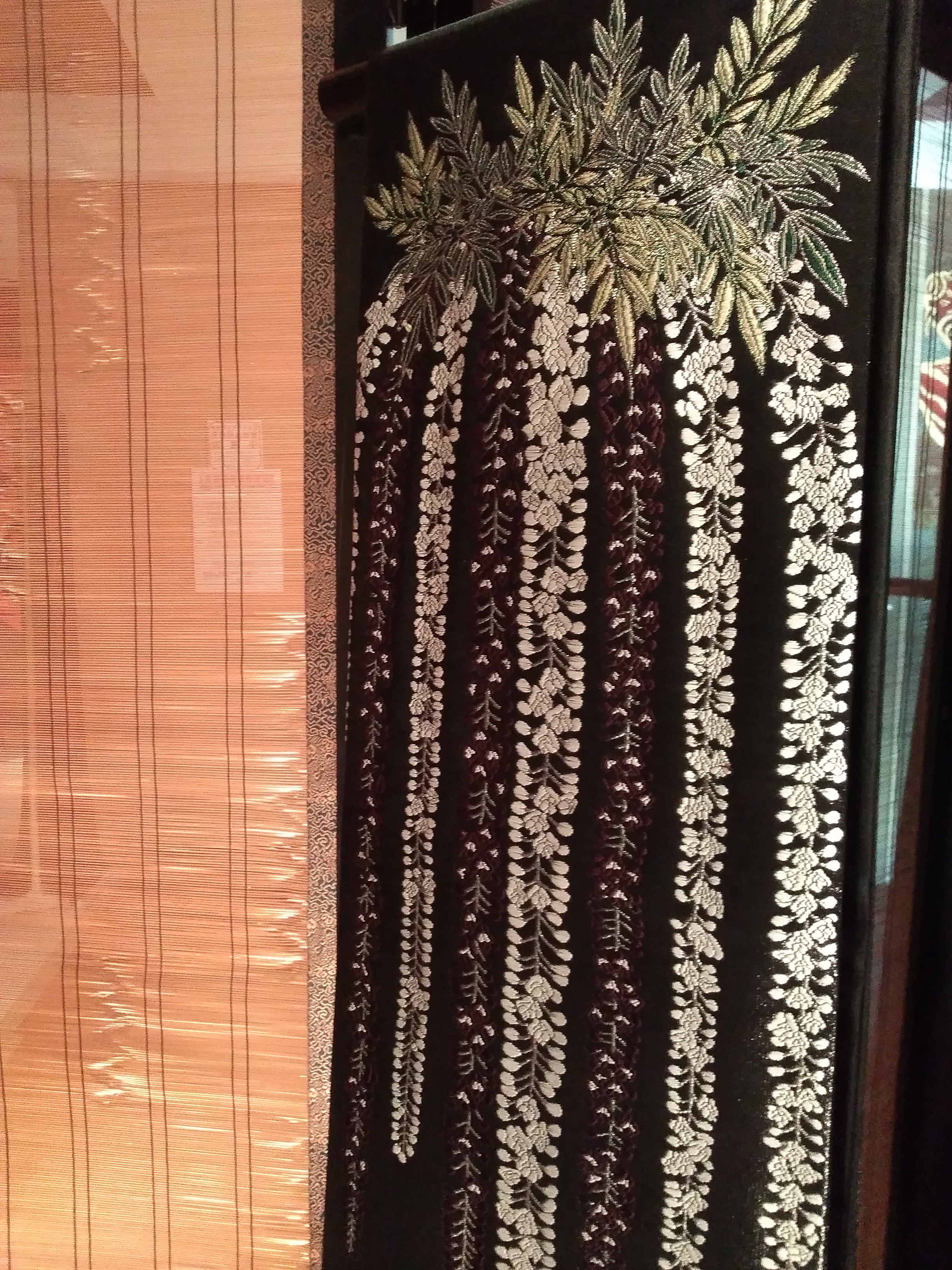 こちらは藤の花。お太鼓結びにしたら、ほとんど見えなくなる。しかしそんなことは関係ない。芸術品です。