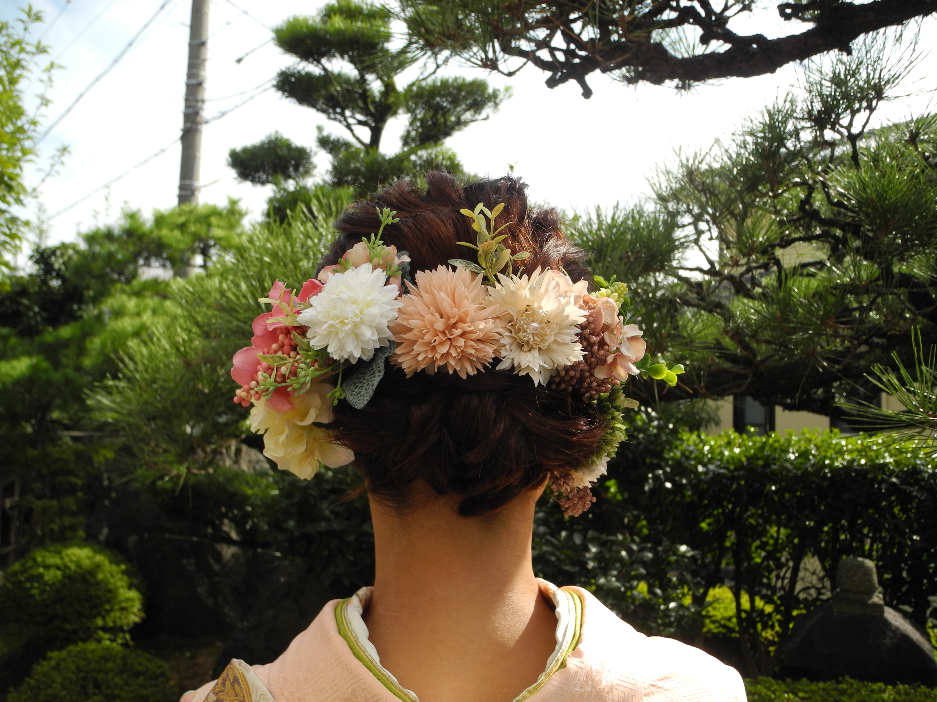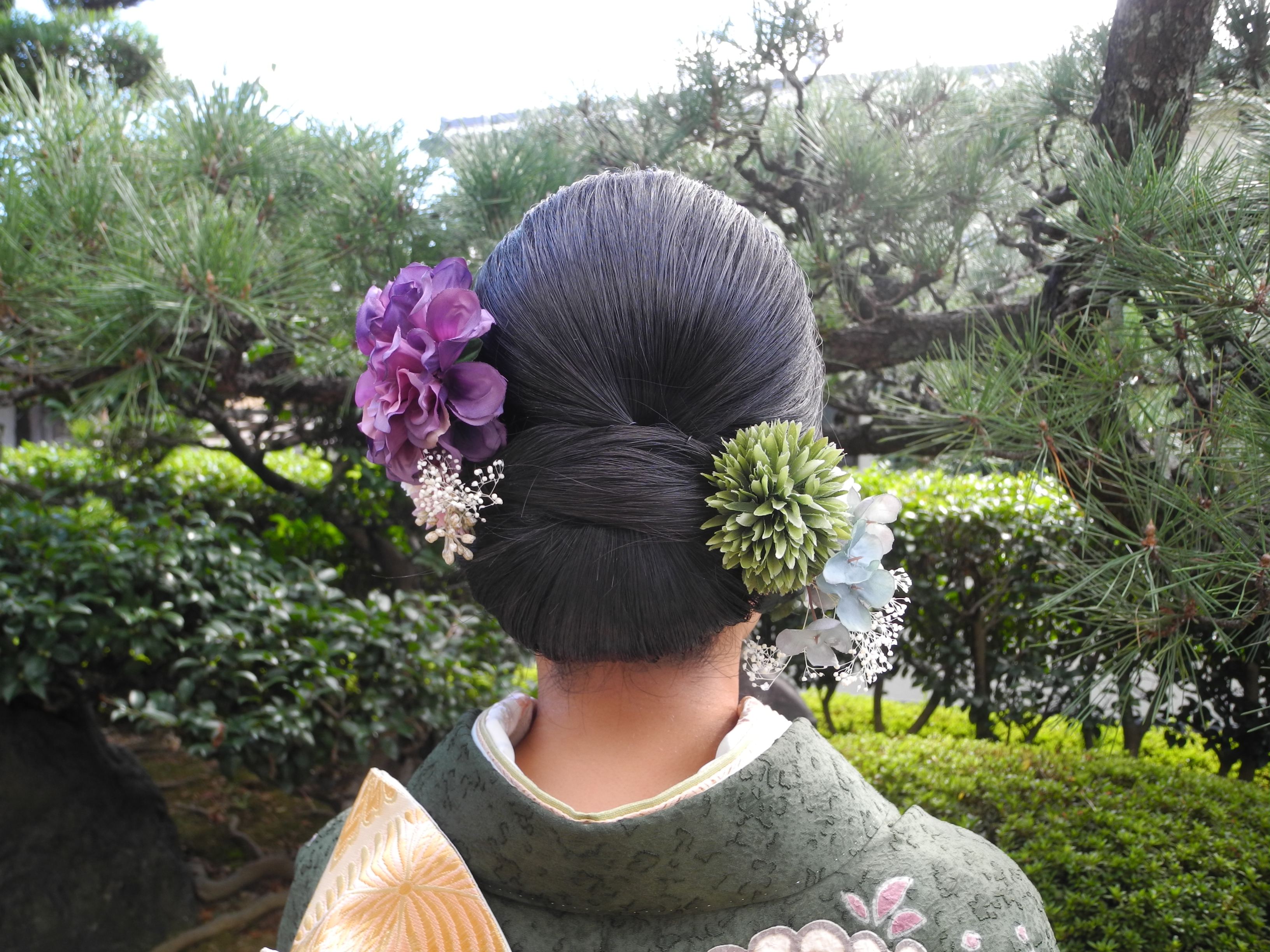 片側のアップスタイル。アップスタイルは、首が長く見えるので着物姿にはピッタリです。
