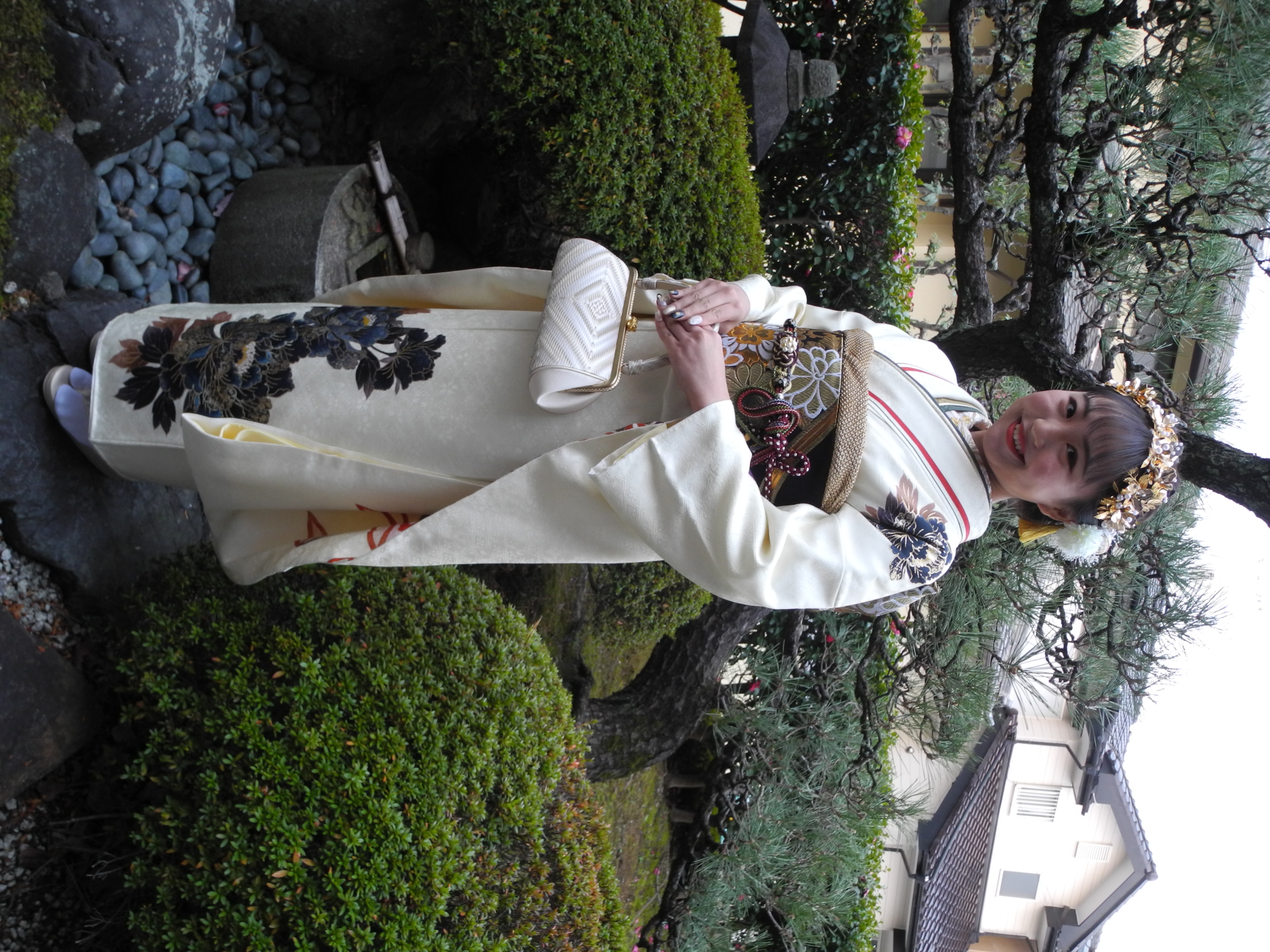 成人式はカラフルなので、柄が少なく、白いお振袖のお嬢様は目立つと思いますよ~♪
